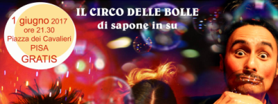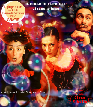 - CIRCO DELLE BOLLE DI SAPONE in su, 1 giugno Piazza dei Cavalieri ore 21.30. Una Creazione di Michelangelo Ricci, con la Compagnia Ribolle Simona Baldeschi, Maria Grazia Fiore, Maurizio Muzzi.