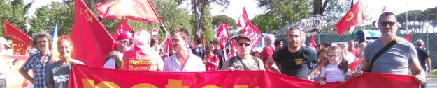 Una buona manifestazione, colorata e comunista, che dà bene la misura di che cosa sia l’opposizione oggi in questo paese disgraziato, ingannato dagli ultimi imbroglioni. Almeno 100 i celerini, tra quelli in divisa e quelli in borghese. Continui passaggi di aerei civili, prima sulla raffineria ad alto rischio, poi sulla base atomica ….