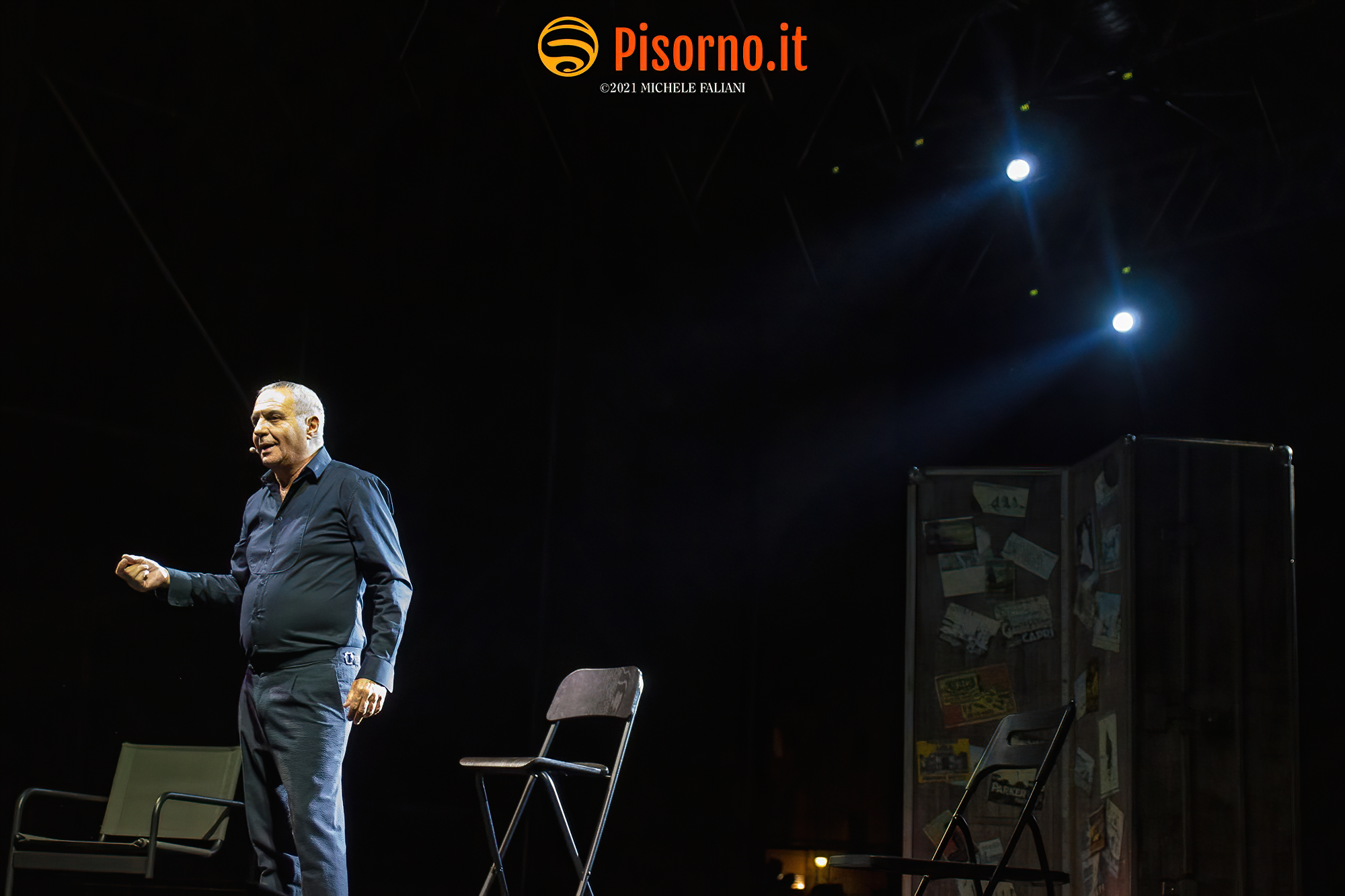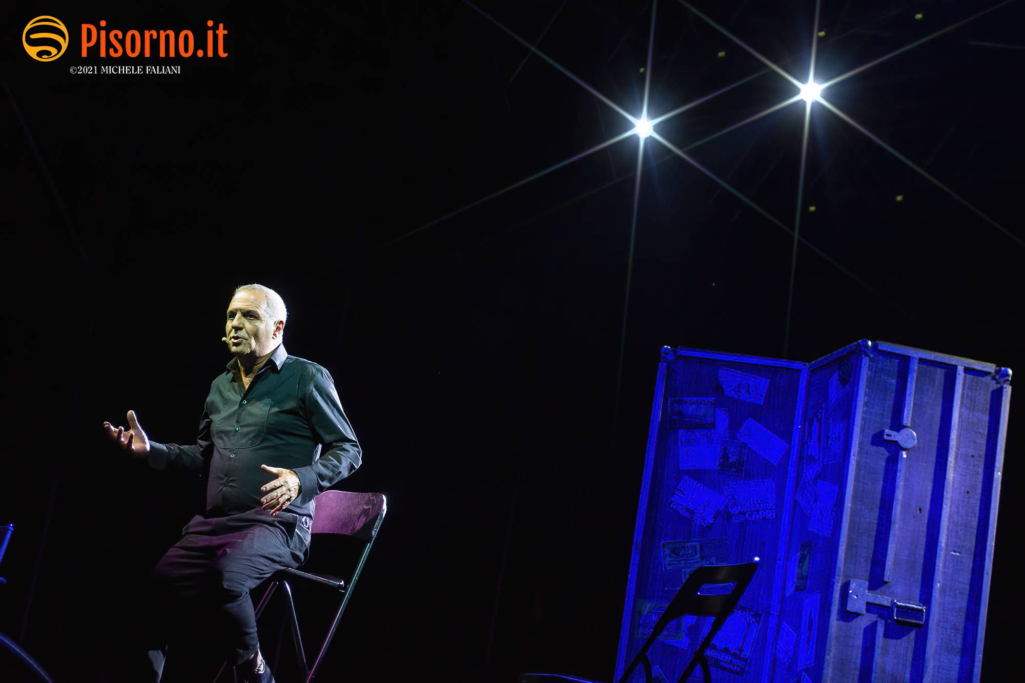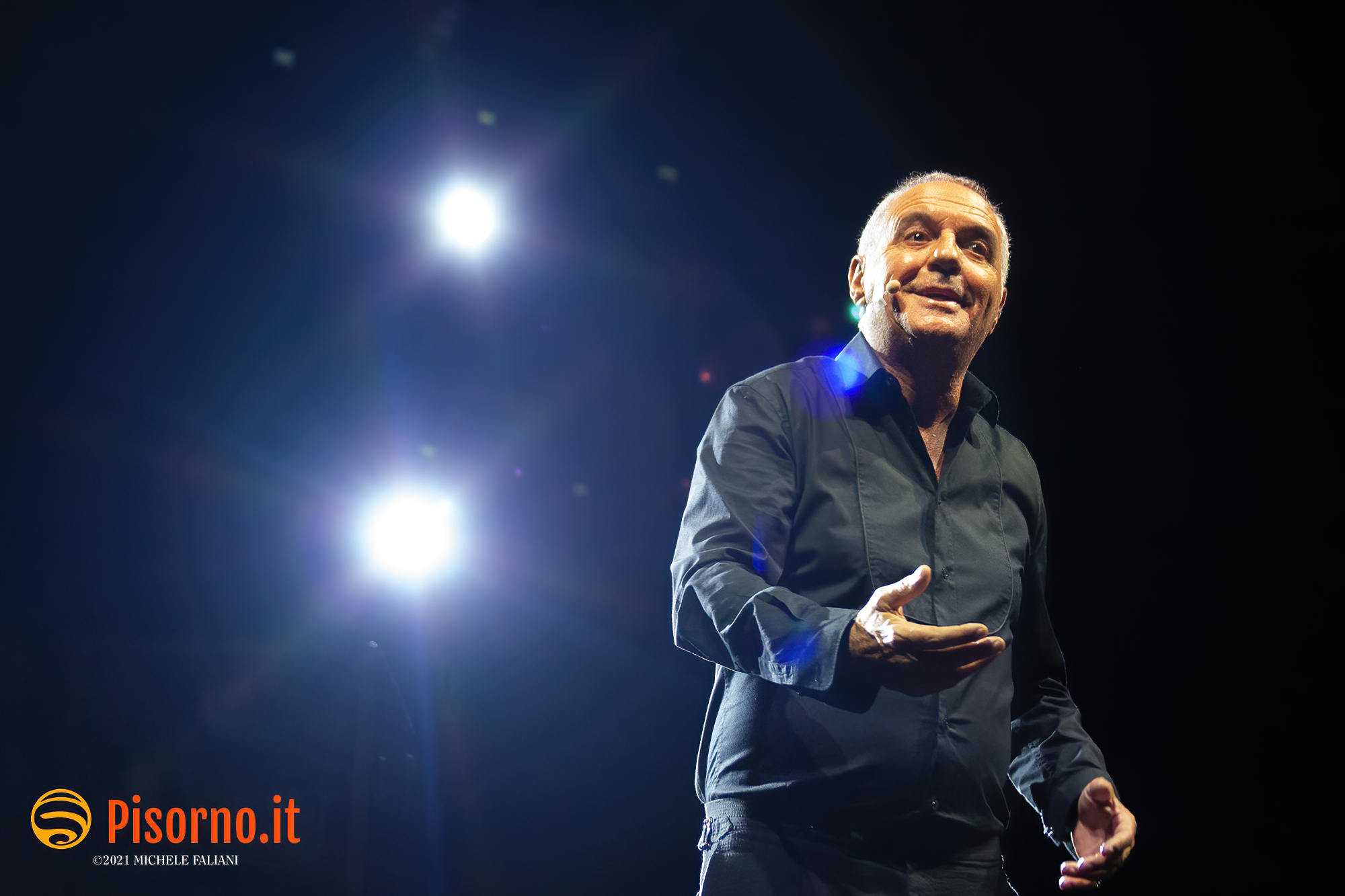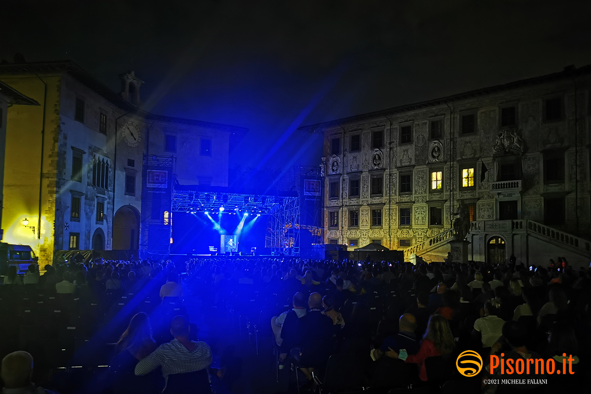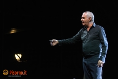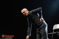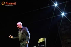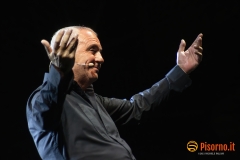 Non avevo mai assistito ad un live show di Panariello, lo ammetto. Conosco bene la sua comicità e i suoi personaggi come chiunque altro, non solo per gli spettacoli televisivi ma anche per i film (e scusatemi se quando penso al Panariello in cinemascope penso più al sottovalutatissimo “Al momento giusto” che a “Bagno Maria”), ma non mi era mai capitato di vederlo – ed ascoltarlo, ovviamente – in un one man show come quello che ha mandato in quasi sold-out la bellissima Piazza dei Cavalieri. Prima di concedere alla platea una carrellata quasi completa dei suoi famosissimi personaggi (Mario il bagnino, il perfetto Renato Zero che tante volte abbiamo apprezzato, lo strepitoso Sirvano, la signora Italia e Naomo) Panariello ha eseguito un lungo e divertente monologo su come siano cambiati le abitudini, i costumi e i tanti vizi degli italiani negli ultimi 30 anni, cioè da quando la sua carriera ha avuto inizio. Evidentemente da solo sul palco, con una scenografia minimale, il comico fiorentino ha tenuto in pugno i quasi 1000 spettatori del Summer Knights con battute esplosive per oltre 90 minuti, riuscendo in mezzo a tante risate a strappare anche qualche sorriso amaro (nel caso del pezzo sulla poesie italiane, delle quali tutti conoscono solo i primi versi) ed a commuovere. Insomma, uno spettacolo divertente, ironico, intelligente che merita di essere visto e rivisto (da gennaio riparte il tour teatrale che farà di nuovo tappa a Pisa e a Livorno) e che dimostra che il Giorgione nazionale rimane uno dei comici italiani con più talento e più versatilità. Datemi retta e vedete di non perdervelo.