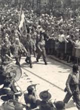I volti dei comandanti, poco più che ragazzi, vi appaiono belli e radiosi come può forse accadere una sola volta nella vita. Subito dietro di loro una giovane donna, con i capelli scuri sciolti sulle spalle, incede nella sua divisa di flanella kaki-…- unica presenza femminile tra tanti uomini”.