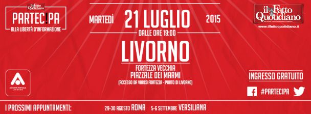 Programma a Livorno 21 luglio 2015, Fortezza Vecchia – Piazzale dei marmi. (Ingresso da Varco Fortezza – Porto di Livorno)