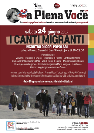“A Piena Voce 2017” incontro di cori popolari. La musica popolare italiana descritta e cantata da alcuni suoi protagonisti, promosso da circolo agorà, VinCanto, Istituto Ernesto De Martino di Sesto Fiorentino