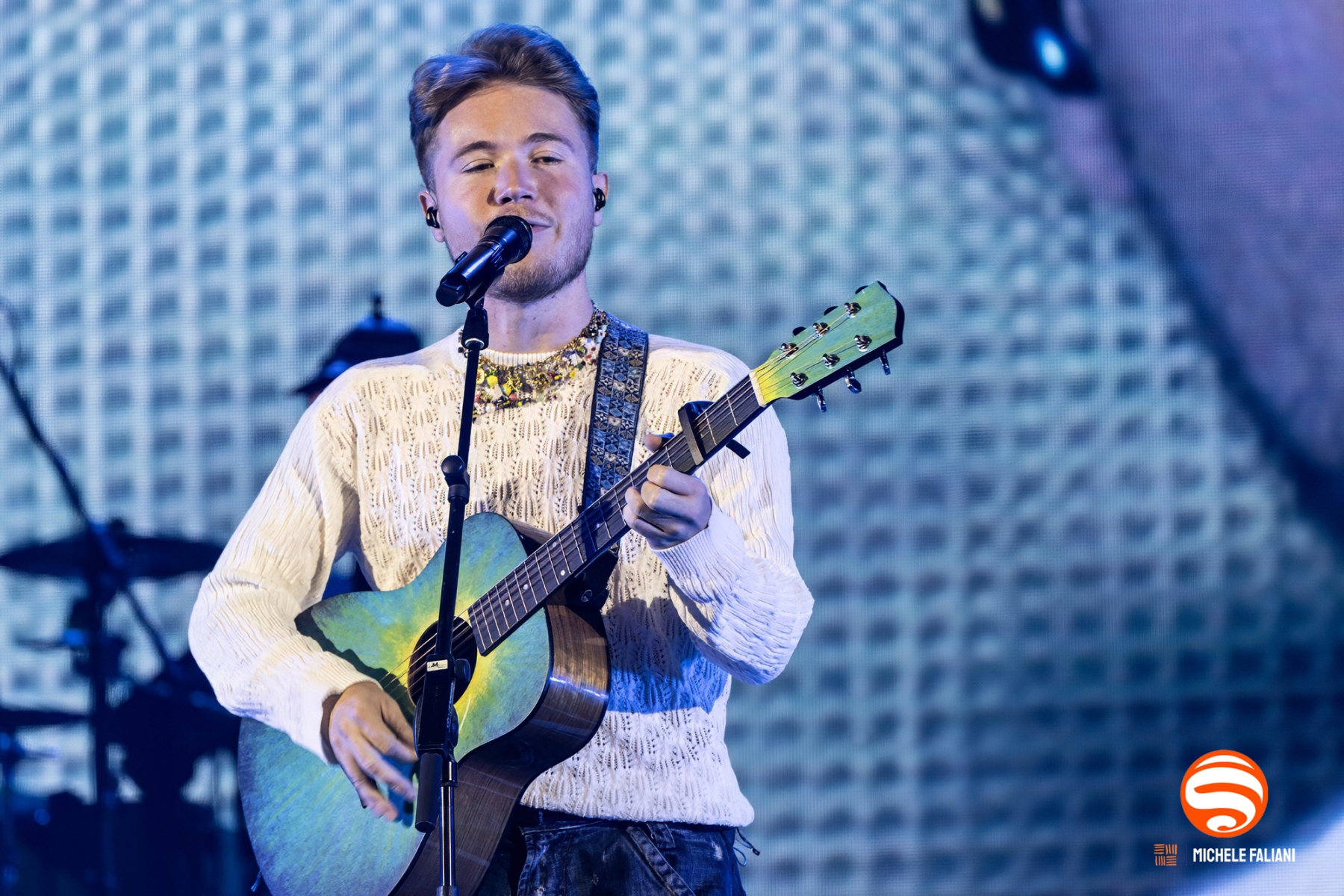 Con «Le cose in comune» emerge un desiderio di maturità nuova, mentre «Bellissimissima» fa esplodere il coro dell’intero palazzetto, confermando dal vivo tutta l’efficacia della sua scelta pop. La romantica «Il filo rosso» fa il resto, portando il pubblico in un abbraccio collettivo.