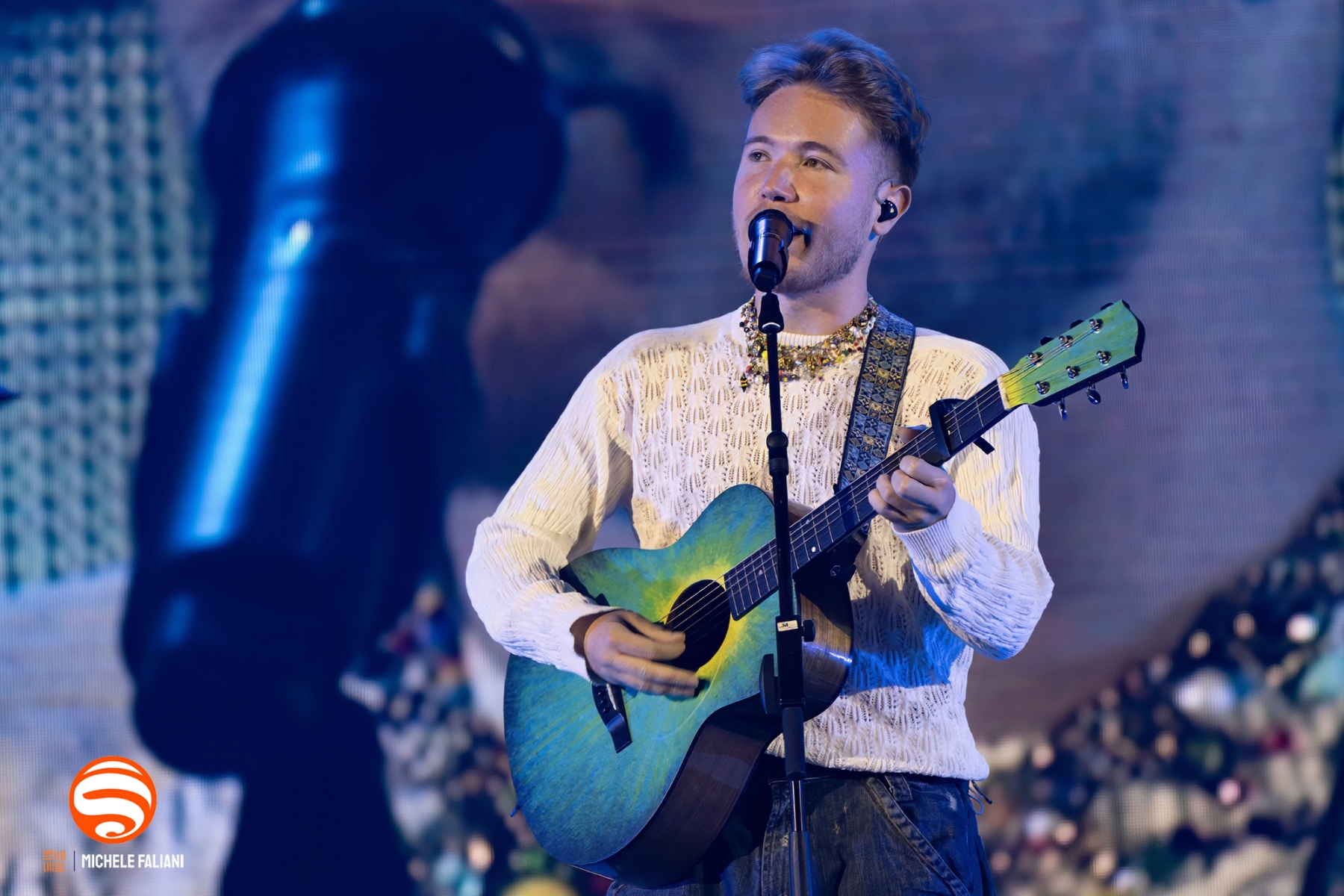 Con «Le cose in comune» emerge un desiderio di maturità nuova, mentre «Bellissimissima» fa esplodere il coro dell’intero palazzetto, confermando dal vivo tutta l’efficacia della sua scelta pop. La romantica «Il filo rosso» fa il resto, portando il pubblico in un abbraccio collettivo.