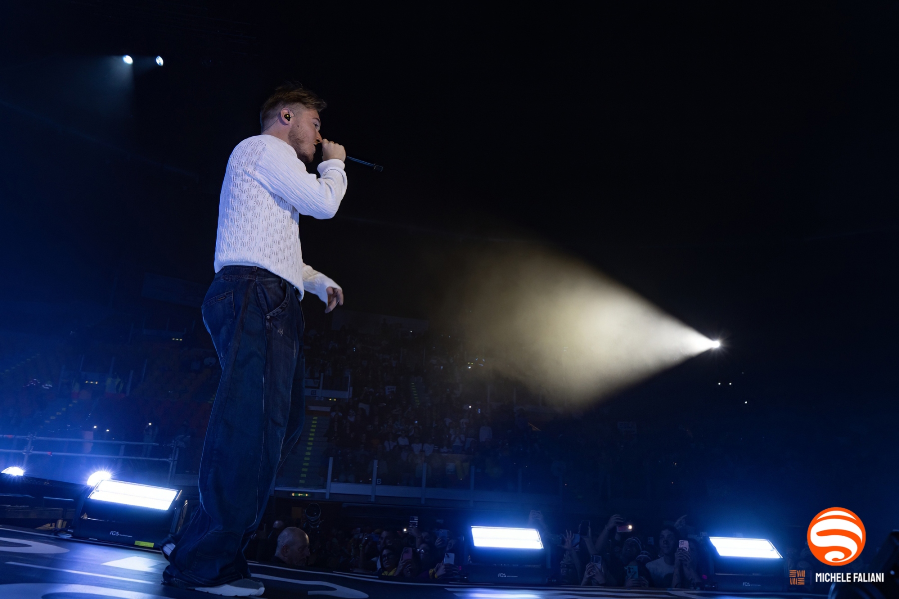 Con «Le cose in comune» emerge un desiderio di maturità nuova, mentre «Bellissimissima» fa esplodere il coro dell’intero palazzetto, confermando dal vivo tutta l’efficacia della sua scelta pop. La romantica «Il filo rosso» fa il resto, portando il pubblico in un abbraccio collettivo.
