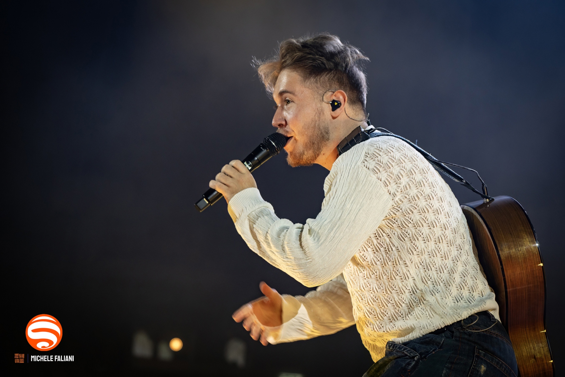 Semplice e solare, con quell’aria a metà tra Ed Sheeran e il ragazzo della porta accanto. Alfa al PalaModigliani di Livorno conquista tutti: il cantautore genovese, nella tappa toscana del suo tour, fa breccia con liriche fresche e leggere, accompagnate dalla sua chitarra e da una voglia genuina di ricordare agli oltre 7mila presenti – palazzetto pieno in ogni ordine di posto, giovani e famiglie mescolati – che l’amore, in fondo, non passa mai di moda. È proprio «Ma so che era innamorato» ad aprire la serata: un’introduzione luminosa, capace di trasformare l’arena in una sorta di stanza familiare, quella cameretta simbolica che da anni incornicia la sua narrativa emotiva.