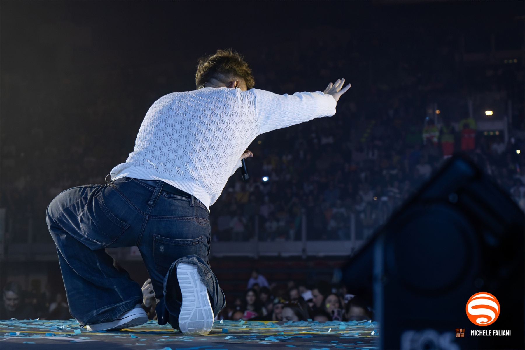 Con «Le cose in comune» emerge un desiderio di maturità nuova, mentre «Bellissimissima» fa esplodere il coro dell’intero palazzetto, confermando dal vivo tutta l’efficacia della sua scelta pop. La romantica «Il filo rosso» fa il resto, portando il pubblico in un abbraccio collettivo.