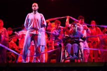 Non mancano anche momenti crudi e provocatori, che scuotono lo spettatore con parole forti e scene inverosimili, come la “terapia cruda”, in cui due ragazze recitano le diagnosi di alcuni attori della Compagnia senza utilizzare mezzi termini ma anzi deridendoli, poiché “la cura parte dalla consapevolezza della malattia”.. In “Tutti Esauriti”, il movimento potente e liberatorio preponderante degli scorsi anni, lascia spazio a coreografie elaborate e di qualità create dai registi e dalla coreografa Silvia Tampucci; l’esaurimento portato in scena dai Mayor Von Frinzius è un limbo nevrotico, lo spettacolo è un’incubazione di energia e nervi tesi come corde di violino.