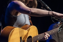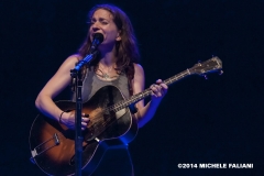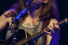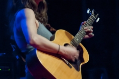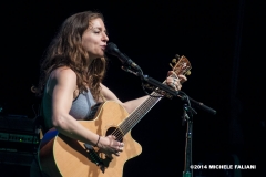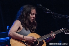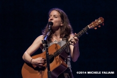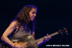 La setlist spazia dagli esordi (la prima canzone “Anticipate”, bellissima, è del ’91) fino al prossimo disco “Allergic to water” in uscita a novembre, del quale Ani esegue “Harder than it needs to be” con la chitarra tenore e “Genie”. I momenti migliori sicuramente “Marrow”, “Untouchable face” e “Gravel”, veri e propri manifesti di Ani, che hanno contribuito a regalarle l’appellativo di riot girl; e anche se ormai è “not angry anymore” la grinta che mette nelle sue canzoni è infinita. Scherza col pubblico, la piccola Ani: dice di essere felicissima di suonare nella città di Dante (che guarda caso è il nome di suo padre e anche quello del suo secondogenito), che era uno che non aveva paura.di parlare dell’amore. Chiama sul palco Heidi, la.responsabile.del banco del merchandising, a leggere in italiano alcune sue poesie. Salta, balla, picchia come una matta sulla.sua Gibson acustica ed alla.fine è madida di sudore. Ogni singolo istante di un concerto stratosferico l’ha vista dare tutto. E il.pubblico del Teatro Puccini (acustica buonissima ed atmosfera raccolta) le tributa una meritatissima standing ovation. La speranza, ora, è quella di non dover aspettare altri 13 lunghi anni per rivederla in Toscana.