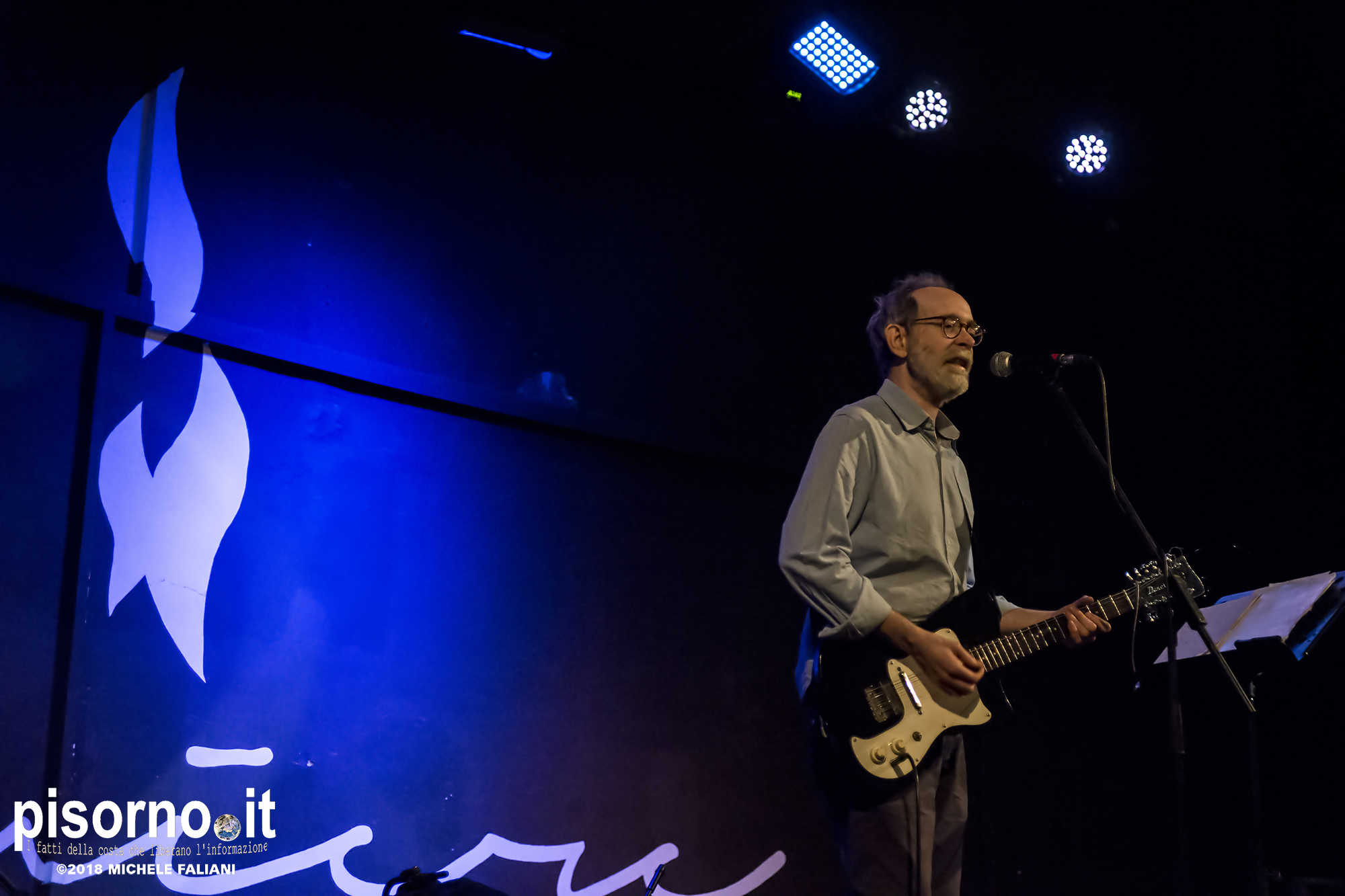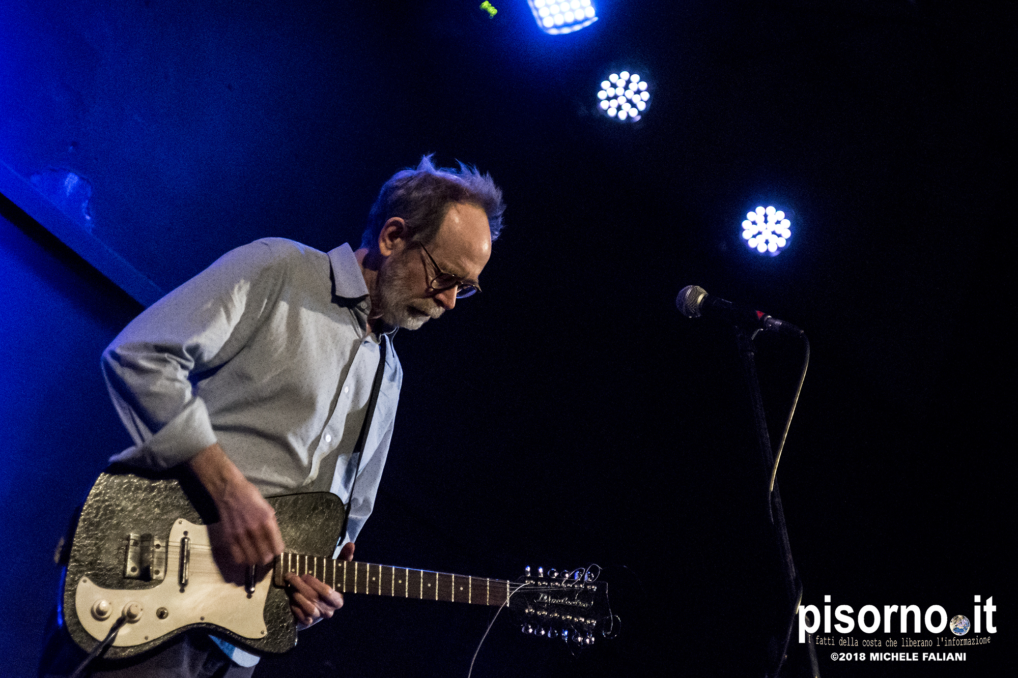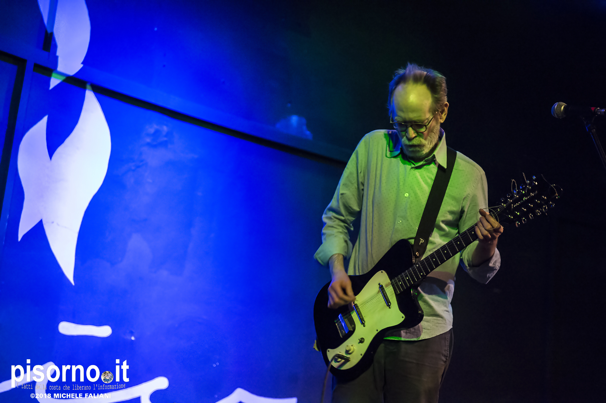Qualche giorno prima del concerto un mio carissimo amico musicista e musicologo scrisse un interessante post su un social network, nel quale chiedeva (soprattutto ai suoi colleghi) se secondo chi stesse leggendo ci sia differenza fra rumore e suono, asserendo che spesso i due concetti possono anche confondersi (il rumore delle foglie mosse dal vento è un suono bellissimo, una canzone che esce da due casse gracchianti e ad un volume altissimo è un rumore disturbante). Ecco, la risposta più esaustiva al quesito del mio amico è stata il concerto di Arto Lindsay al Lumiere di Pisa: un’ora (scarsa) di canzoni eseguite soltanto con la sua Danelectro a 12 corde, con loop stratificati a creare nubi di suoni che non credevo potessero uscire da una chitarra. Arto Lindsay, al pari con il produttore del primo disco del suo primo gruppo (i leggendari DNA), è un non-musicista, un artista che compone e suona grazie al suo talento artistico senza avere nessuna competenza tecnica. Ma quello che viene fuori è Arte, pur con suoni che possono risultare strani, sgradevoli, non convenzionali e fuori da ogni schema: basterebbe ascoltare la dolcissima “Illuminated”, eseguita come bis, o “Mundo civilizado” (scritta con Marisa Monte). Per farvi un’idea accontentatevi del video di “Estação derradeira” che linkiamo a fondopagina, e la prossima volta che l’associazione Re-Play e Caracol Concerti lo riportano da queste parti vedete di essere fra quelli che al Lumiere hanno assistito a qualcosa che travalica il semplice concetto di concerto.