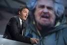 A Roma, all’una di notte, è Beppe Grillo a celebrare lo storico risultato elettorale del M5stelle affacciandosi, dalla finestra del suo hotel, a braccia spalancate