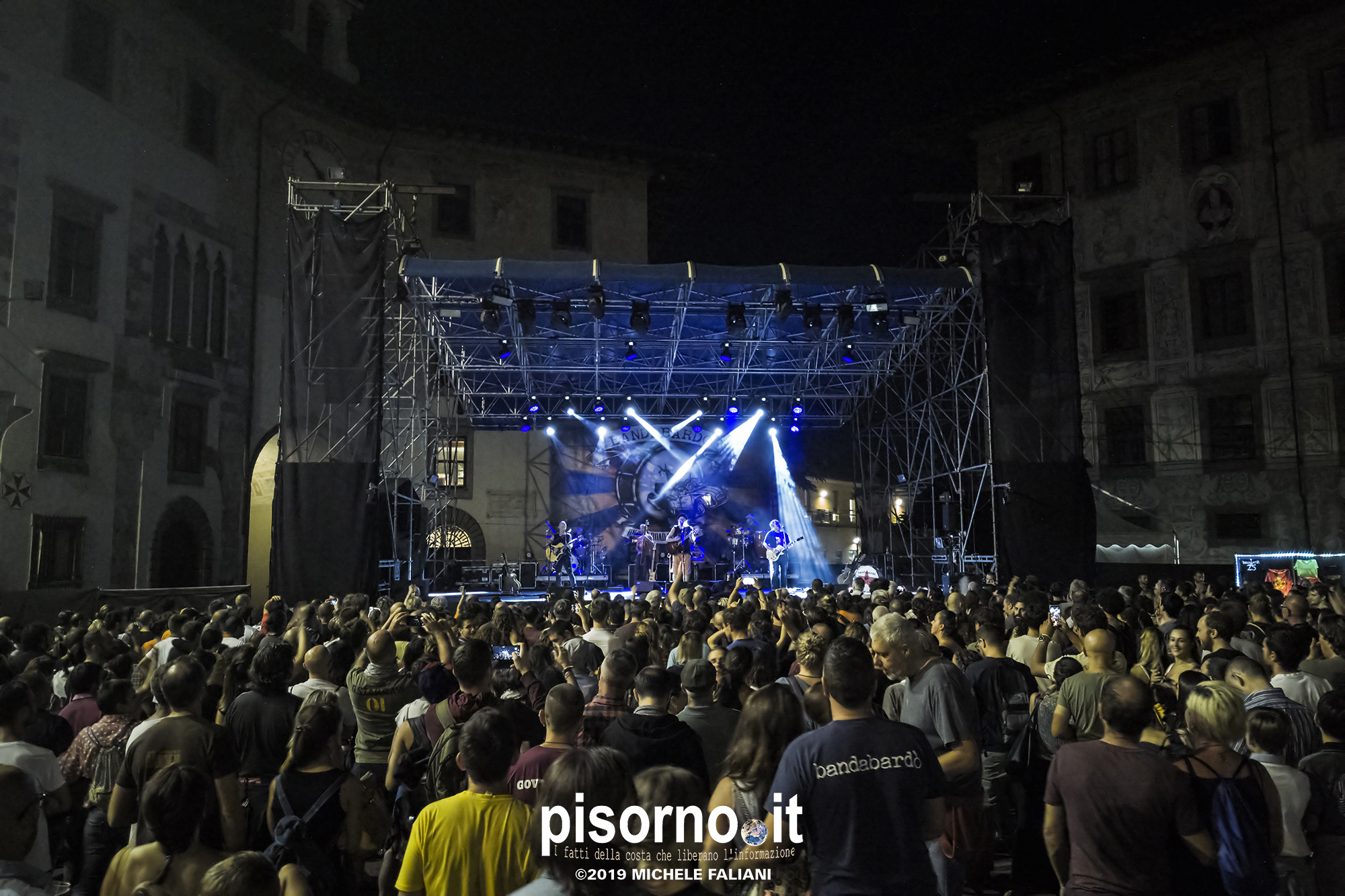 Superati i 25 anni di attività, la mitica Bandabardò prosegue la sua inarrestabile attività live salendo sul palco del Summer Knights, il festival in Piazza dei Cavalieri che fa parte di PisÆstate. La risposta del pubblico, come sempre quando si parla della band di Erriquez e Finaz, è stata ottima: quasi 2000 persone di tutte le età, famiglie intere a saltare sottopalco e a cantare a squarciagola canzoni come “Filastrocca 2” o “Briganti”, che ormai sono veri e propri inni della banda e dei loro fans. E poi “Ao?!”, “L’estate paziente” e “Vento in faccia”, che continuano a dimostrare quanto il folk-rock della band fiorentina sia in grado di divertire e allo stesso tempo far riflettere, con testi intelligenti e impegnati. Insomma, della Bandabardò ci saranno, minimo, altri 25 anni.