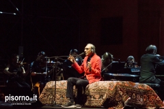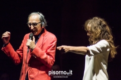 Alle 21,30 è partita Alice, con un set che l’ha vista abbracciare tutto l’arco temporale della propria carriera (da “Per Elisa” alla splendida “Il sole nella pioggia”, da “Il vento caldo dell’estate” a “Da lontano”), accompagnata – come del resto Battiato nel set successivo – dall’ Ensemble Symphony Orchestra diretta da Carlo Guaitoli, dal pianoforte di Angelo Privitera e da una band composta da Giordano Colombo alla batteria, Andrea Torresani al basso e Osvaldo Di Dio e Antonello D’Urso alle chitarre. Poi è venuto il turno di Battiato, che ha sfornato una sequenza di gemme (“L’era del cinghiale bianco”, “Up patriots to arms”, “La cura”, “Povera patria”, “No time no space”, “Shock in my town”) che ne hanno dimostrato ancora una volta la grandezza. Ma è stato verso la fine del set che sono saltati tutti gli schemi: con “Cuccurucucù” e “Centro di gravità permanente” il pubblico si è riversato sotto il palco, e da quel momento tutti a ballare. Anche quando Alice è rientrata sul palco ed è arrivato il momento dei duetti (“I treni di Tozeur”, “Prospettiva Nevskij”, “Bandiera bianca / Sentimiento nuevo”).