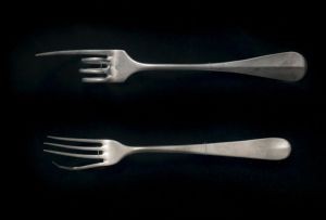 È stato difficile creare la mostra, perché chi ha un’opera di Munari non se ne priva volentieri. È stato quindi difficile trovare le opere e trovarle secondo una determinata cronologia: qui ho opere che vanno dal futurismo, alle Forchette di Munari che sono importantissime, un suo autoritratto, una curva di Peano esposta al MACBA di Buenos Aires e recentemente alla GNAM di Roma, un’altra esposta alla mostra del Museo del Novecento di Milano, Munari Politecnico. Tutte le altre opere – Negativi Positivi, Ricostruzione teoriche di oggetti immaginari, Scritture illeggibili, Xerografie – ricostruiscono il percorso dell’artista. Poi ci sono delle “chicche”: l’Olio su tela, che diversi acquirenti chiedevano, lo interpreta “appiccicando” dei pezzi di tela sul figlio e spalmandoli d’olio. Ecco l’olio su tela! Ironizzando così su quelle che sono le richieste del mercato. Poi ci sono i Campioni di tessuti stampati: nascono dall’errore di una macchina che, a causa della rottura di un tubo, gocciolava un acido che macchiava irregolarmente il tessuto…