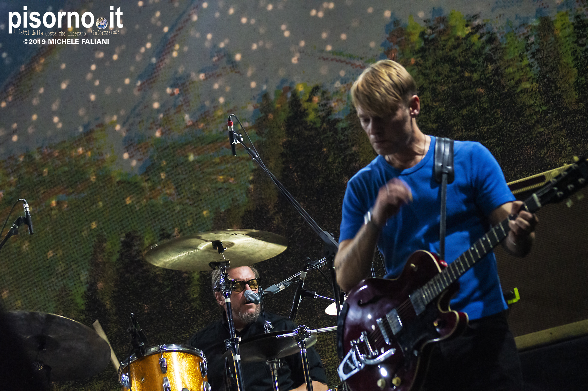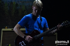 Quando John e compagni salgono sul palco vengono accolti da un boati dagli oltre duemila presenti, e subito si attacca con l’inconfondibile suono della chitarra di McCrea e con “Frank Sinatra”, la canzone che apre le danze in “Fashion Nugget”, l’album del 1995 che li ha fatti conoscere ovunque nel mondo. Un’energia incredibile che rende impossibile stare fermi, la tromba di Vince DiFiore, i riff incredibili di Xan McCurdy e il tiro pazzesco della sezione ritmica (Daniel McCallum al basso e Paulo Baldi alla batteria, che sono membri non ufficiali della band): i Cake tirano fuori un concerto straordinario, con inni come “Sheep go to heaven”, “Meanwhile Rick James…” e “Stickshifts and safetybelts”, fino ad arrivare alle celeberrime cover di “Perhaps, perhaps perhaps” e di “I will survive” di Gloria Gaynor, con tutto l’Estragon a cantare insieme a McCrea. E poi nei bis non possono mancare “Daria”, l’hit “Short skirt / Long jacket” e “The distance”, con la quale il concerto finisce lasciando duemila persone sudate ed appagate, felici di aver ascoltato una delle band più divertenti e più riconoscibili del mondo, che pur non inventando niente di nuovo sa essere originale e trascinante, passando indenne attraverso i decenni e le mode. Adesso aspettiamo con ansia il nuovo album e chissà, nuove nate in Italia senza dover aspettare altri 8 anni. Lunga vita ai Cake.