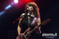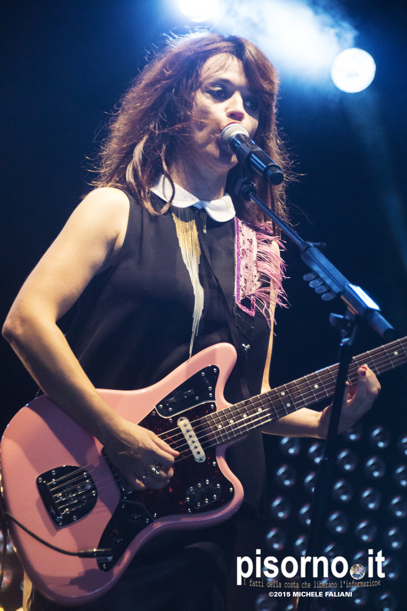 Si è chiusa con Carmen Consoli la tre giorni del Metarock al mare. Dopo Bobo Rondelli e Max Gazzè è toccato alla cantantessa catanese infiammare Piazza Viviani a Marina di Pisa, con un concerto tiratissimo. Formazione a tre, con Carmen e la sua Fender Jaguar a centro palco e Luciana Luccini al basso e Fiamma Cardani alla batteria a fare legna ai lati. La scaletta ha dato spazio all’ultimo cd di Carmen (“Sintonia imperfetta” la più riuscita) fino ai classici “Parole di burro”, “Confusa e felice”, “Besame Giuda” e “Fiori d’arancio”. Bellissima e intensa “Per niente stanca”, e anche “Amore di plastica” eseguita solo voce e chitarra come bis. Brava, bravissima Carmen.