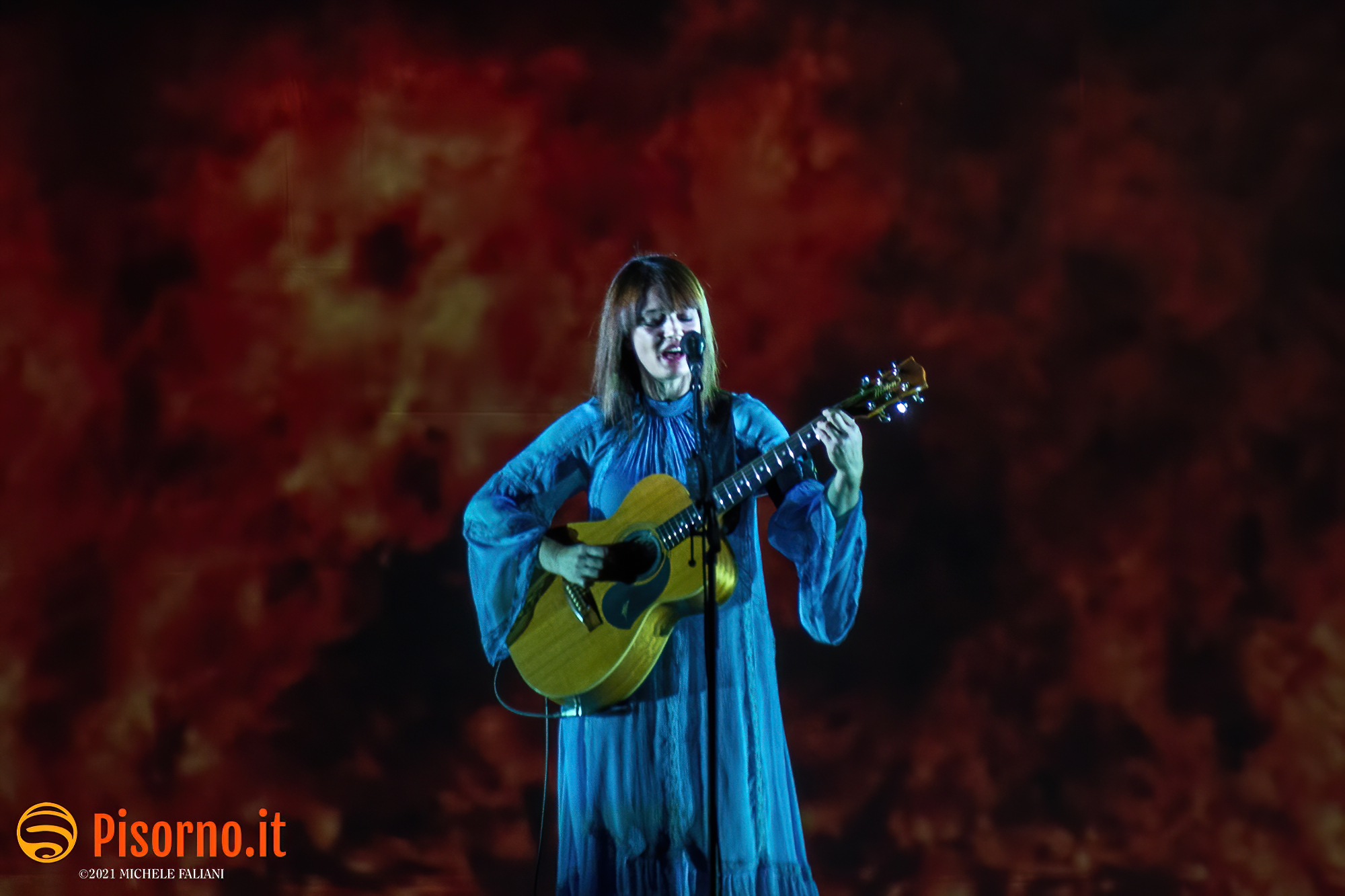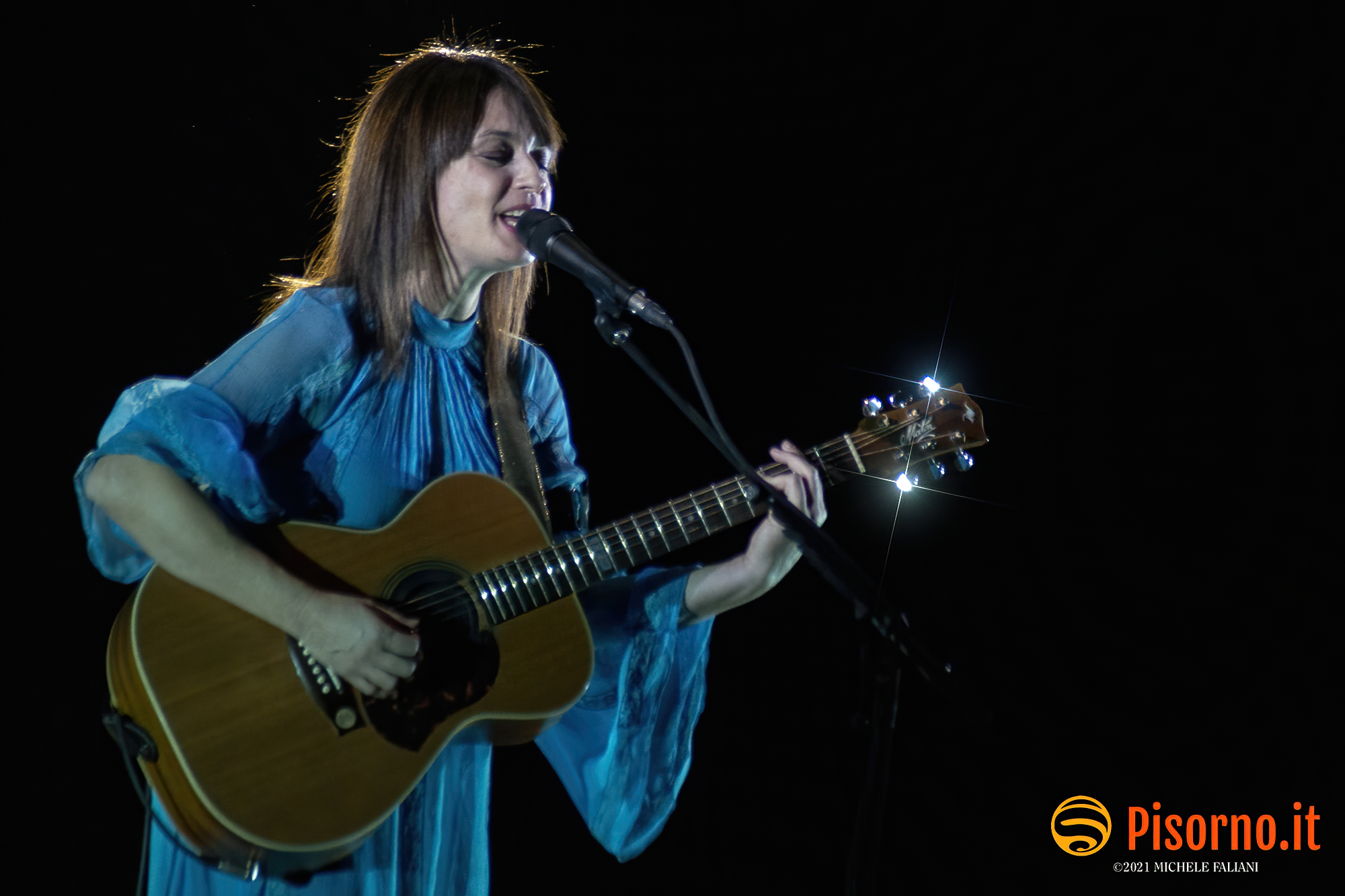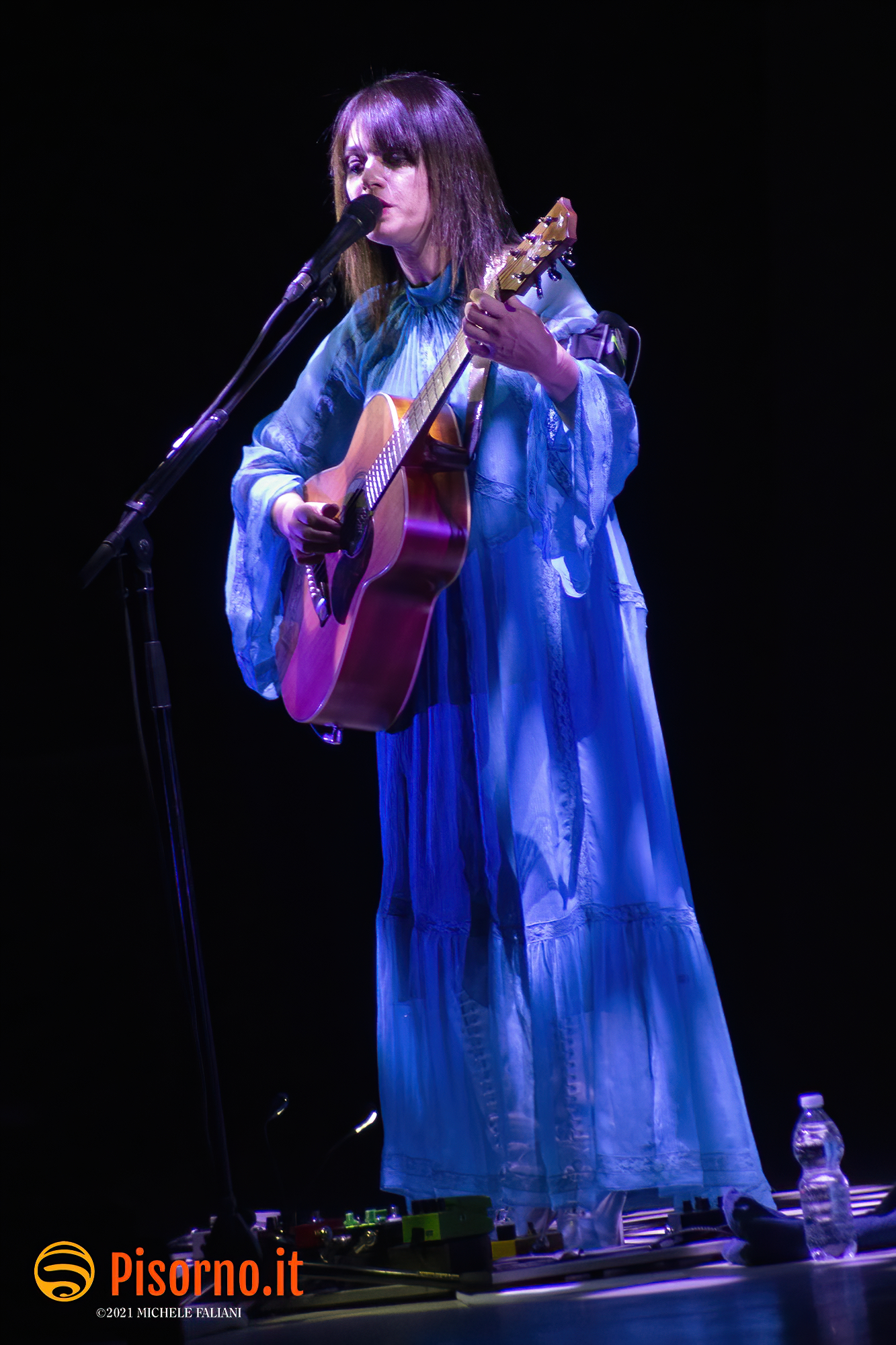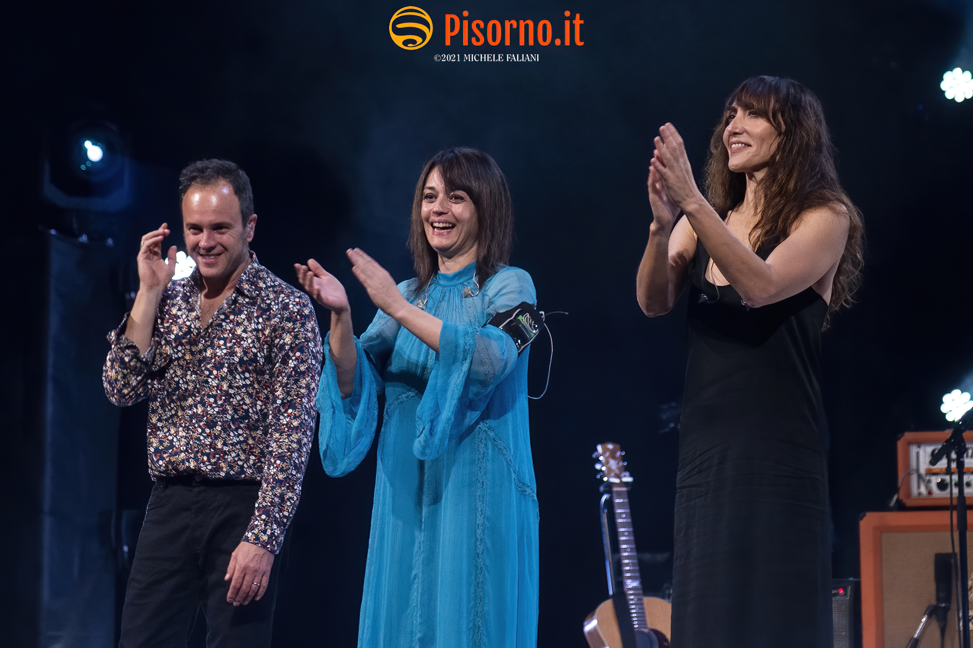 Il Teatro Verdi, finalmente riaperto ai concerti dopo quasi due anni e stracolmo di persone, ha salutato l’unica tappa toscana del nuovo tour di Carmen Consoli, che (come il nuovo lavoro in studio della cantautrice catanese) si chiama “Volevo fare la rockstar”. Un concerto di 2 ore e 10 minuti, diviso in tre parti, più l’immancabile bis con tutto il pubblico sottopalco come ai vecchi tempi. Prima parte con Carmen accompagnata dal chitarrista Massimo Roccaforte, nella quale sono state eseguite le canzoni del nuovo cd; Alle spalle dei sue musicisti, proiettate su un maxischermo, le splendide immagini di Donatella Finocchiaro che mostrano una Sicilia bellissima e la Consoli nelle varie fasi della sua vita. Arrangiamenti scarni che danno una nuova vitalità alle belle canzoni del nuovo album. Breve pausa e Roccaforte viene sostituito da Marina Rei per un secondo atto del concerto chitarra/batteria dall’energia incredibile. Si susseguono i brani più rock del passato di Carmen, come “Per niente stanca” e “Confusa e felice”, con il pubblico che fatica a restare seduto sulle comode poltrone del Verdi. Altra breve pausa e i tre musicisti si trovano insieme sul palco: Marina Rei passa dalla batteria al cajón, i suoni si fanno leggermente più morbidi e si parte con una personalissima e splendida versione di “Stranizza d’amuri” di Battiato, per un commovente tributo al suo ricordo. Poi una serie di ballate ormai entrate nella storia della canzone d’autore italiana (“Parole di burro”, “L’ultimo bacio”) e chiusura con la tarantella di “‘A finestra” prima del bis con “Amore di plastica” eseguita voce e chitarra. Fans in delirio per un concerto davvero bellissimo, che ha mostrato ogni sfaccettatura della cantantessa più amata d’Italia. Bentornata, Carmen.