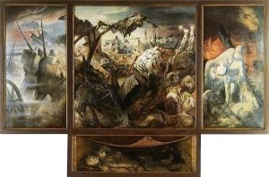 I reduci sperimentarono il senso di estraneità, il non poter condividere l’esperienza di morte vissuta al fronte per l’impossibilità di tradurre in forme efficaci l’orrore della guerra. Sono forse certi dipinti in cui la realtà irrompe senza mediazioni, che meglio arrivano a comunicare in modo più immediato la carneficina della guerra e l’indifferenza della comunità ai dolori di chi l’ha sofferta.