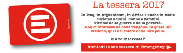 “In questo terribile anno rinnoviamo il nostro impegno di sempre: prenderci cura delle vittime di guerra e violenze. Sta per chiudersi un anno terribile. I morti di Berlino, Bruxelles, Istanbul, Nizza si sono aggiunti al disgraziato elenco di vittime degli ultimi quindici anni di guerra. Non troppo distanti da noi, gli abitanti di Aleppo sono sotto assedio da mesi, i bambini muoiono di fame. A Mosul si sta consumando un altro massacro di uomini, donne e bambini. In Iraq come in Yemen, l’orrore è all’ordine del giorno. In Afghanistan si combatte sul 90% del territorio, le vittime aumentano al punto che nei nostri ospedali ogni giorno c’è un’emergenza, un ferito su tre, tra i nostri ricoverati, è un bambino. 60 milioni di persone nel mondo sono in fuga e cercano rifugio dalle violenze e dalla povertà, sono troppi anche quest’anno quelli che, invece, hanno trovato la morte. Davanti a questa spirale di dolore, paura e violenza, che sembra senza uscita, Emergency non può che rinnovare l’impegno di sempre: prendersi cura delle vittime, praticare diritti che sono un antidoto alla violenza, lavorare per spazzare la guerra fuori dalle nostre vite.