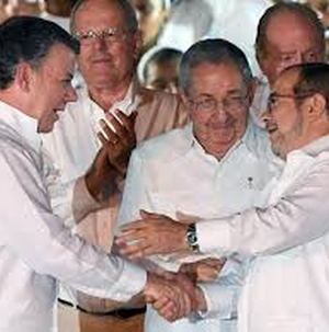 Un’altra Colombia è possibile? La domanda è risuonata con forza, ieri, a Cartagena de Indias. La città caraibica ha ospitato una storica iniziativa, la firma degli accordi di pace tra il governo di Manuel Santos e la guerriglia marxista delle Forze armate rivoluzionarie colombiane (Farc). Una cerimonia breve (70 minuti, iniziata alle 17 ora locali), ma di portata internazionale: 2.500 gli invitati, tra i quali i leader o ministri degli Esteri di una quarantina di paesi e una decina di rappresentanti di organismi multilaterali, e poi parlamentari, magistrati, 400 vittime delle violenze degli ultimi anni, 120 membri delle Farc, industriali, sindacalisti, militari. Al centro, la delegazione cubana, guidata dal presidente Raul Castro, che ha ospitato all’Avana i negoziati, durati quasi quattro anni. Un risultato ottenuto grazie alla diplomazia di pace inaugurata dallo scomparso presidente del Venezuela Hugo Chavez e proseguita con l’attuale, Nicolas Maduro.