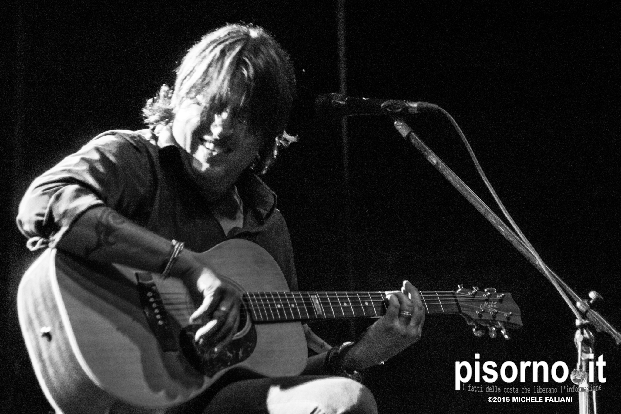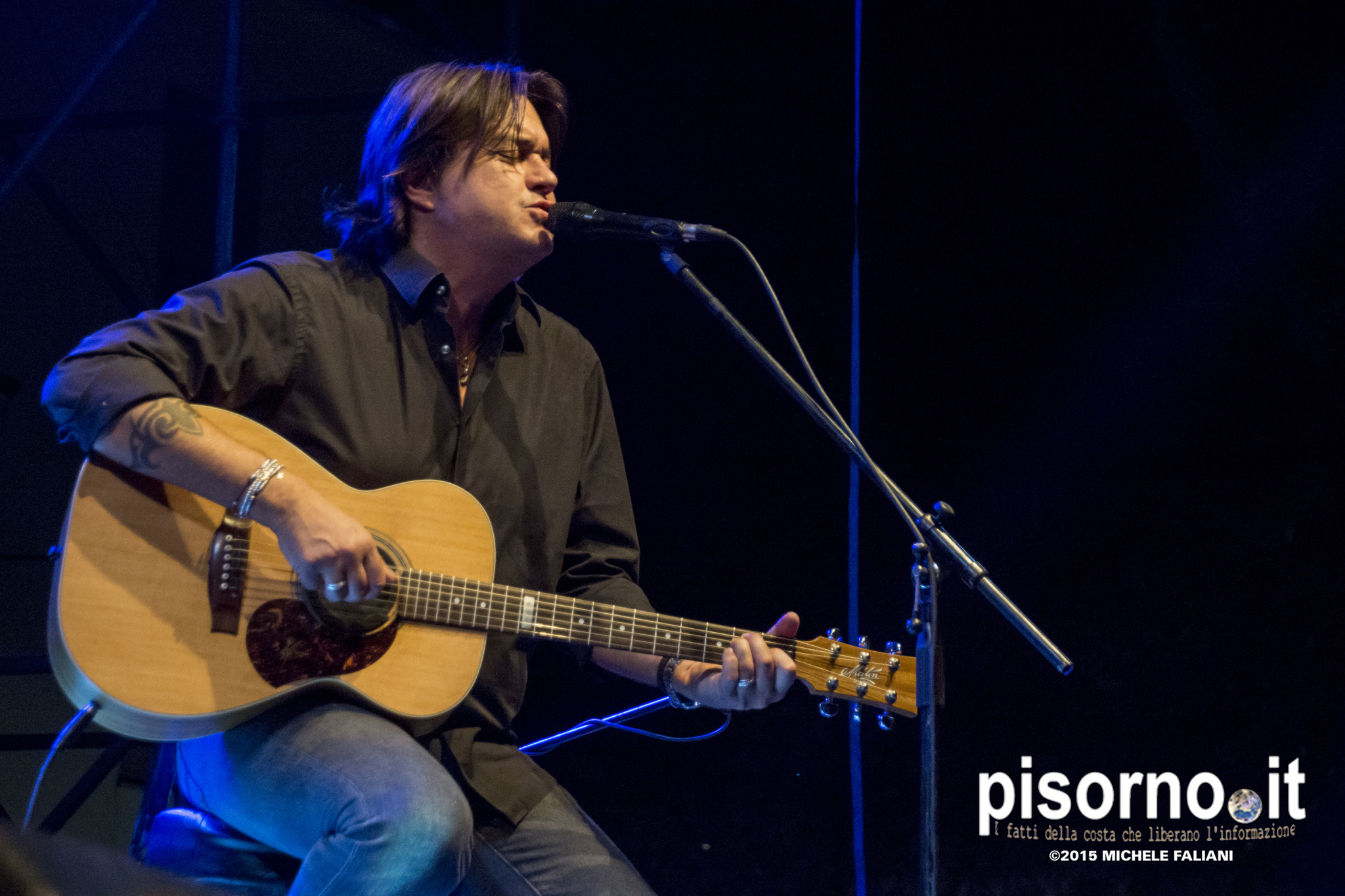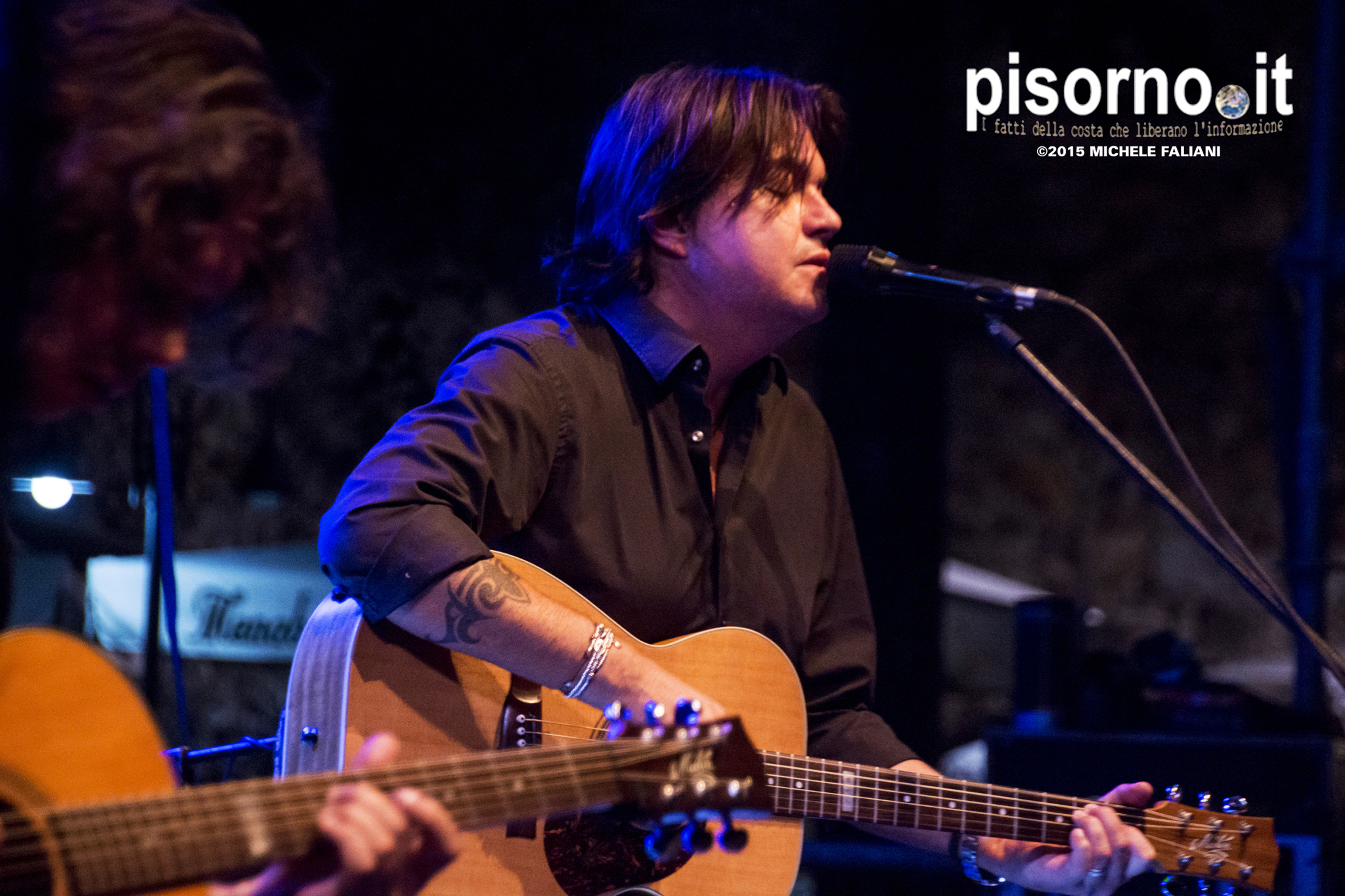 Per la maggior parte delle persone, purtroppo, Cristiano De André rimarrà sempre noto per essere “figlio di” o per le notizie di gossip; meno di quanti Cristiano stesso meriterebbe sanno che invece De André junior è titolare di alcuni dei più bei dischi di canzone d’autore italiana usciti negli ultimi anni: “L’albero della cuccagna”, “Cristiano De André” (che conteneva “Dietro la porta” con la quale si piazzò inaspettatamente secondo al Festival di Sanremo), lo splendido “Sul confine”, “Scaramante” e l’ultimo “Come in cielo così in guerra”, che ha visto Cristiano tornare all’Ariston e vincere il premio della critica con “Invisibili”. E proprio questa canzone è stata uno dei momenti più emozionanti del concerto di domenica a Cascina, per la festa Lunatica organizzata dal Comune e da Puntoradio, che ha visto la Piazza dei Caduti riempirsi fino all’inverosimile per l’unica tappa toscana del tour “Acustica”. Non sono mancate le riletture di alcune delle canzoni più celebri del padre Fabrizio (come non citare “La canzone di Marinella”, “Un giudice”, “Andrea”, “Se ti tagliassero a pezzetti”, “Nella mia ora di libertà”, “La canzone dell’amore perduto” e “Verranno a chiederti del nostro amore”), ma erano in tanti, come me, a preferire canzoni splendide come “Notti di Genova”, “Lady Barcollando”, “Nel bene e nel male” e “Disegni nel vento”.