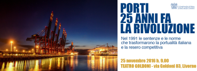 L’anno 2016 coincide anche con una “ricorrenza” significativa come quella della Riforma della Portualità Italiana. Sono infatti trascorsi oltre 25 anni da quando – proprio qui a Livorno – si svolsero gli accadimenti che portarono alla redazione dei cosiddetti Decreti Prandini, che presero il nome dell’allora Ministro delle Infrastrutture, e successivamente all’emanazione della legge 84/94.