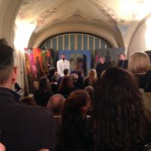 Di grande effetto la scenografia e l’inquadratura quasi cinematografica della presenza in scena dell’artista Paolo Cervi Kervischer, riconosciuto a livello internazionale per la sua ricerca pittorica e fotografica, impegnato sul palcoscenico nella fase creativa a dipingere sulle grandi tele, nella continuità della musica e dei passi di danza. L’artista triestino, che ha esposto le sue opere anche nel Foyer del teatro, ha realizzato in scena, dal vivo, tre dipinti su grandi tele, una simbologia che sembra rievocare le tre fasi dell’opera letteraria di Goethe, scritta in tre momenti diversi della sua esistenza.