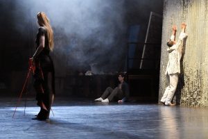 Una figura volutamente estranea al testo di Goethe, un essere superiore che i coreografi hanno sentito il bisogno di inserire nell’INFAUST affinché quella grande macchina che è il Destino, avesse un senso, è invece colei che tesse la tela e intreccia i fili.
