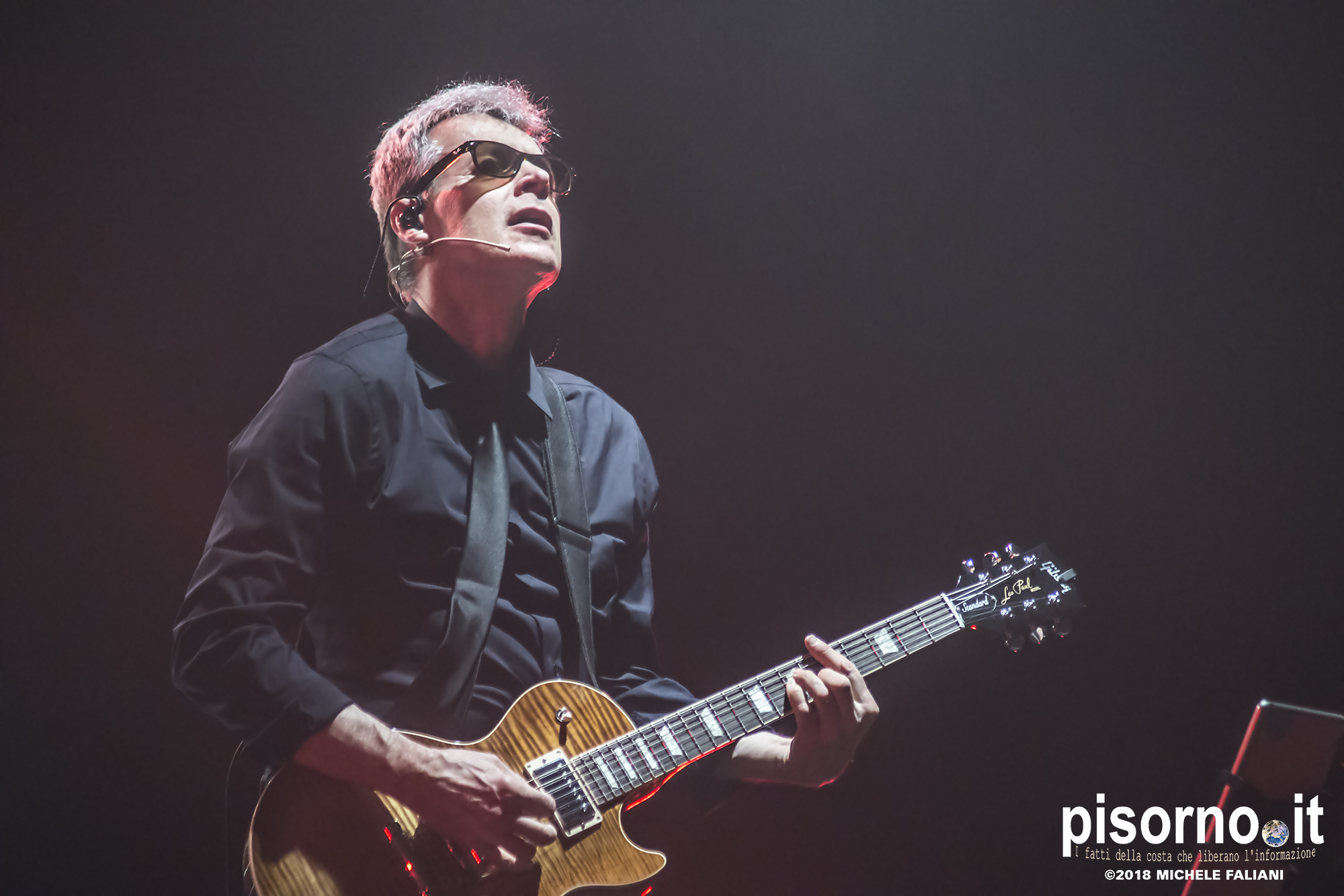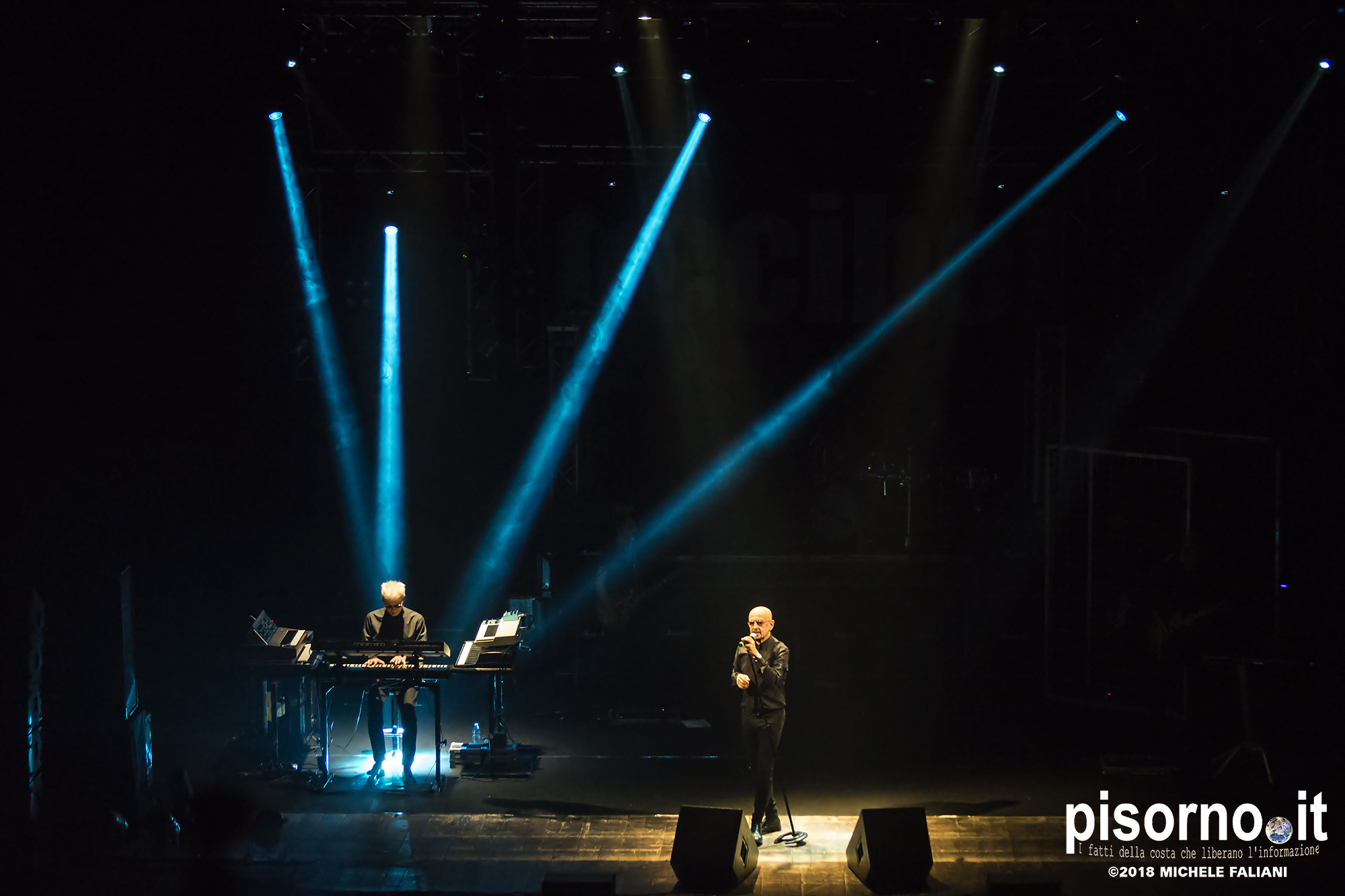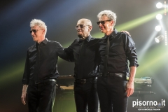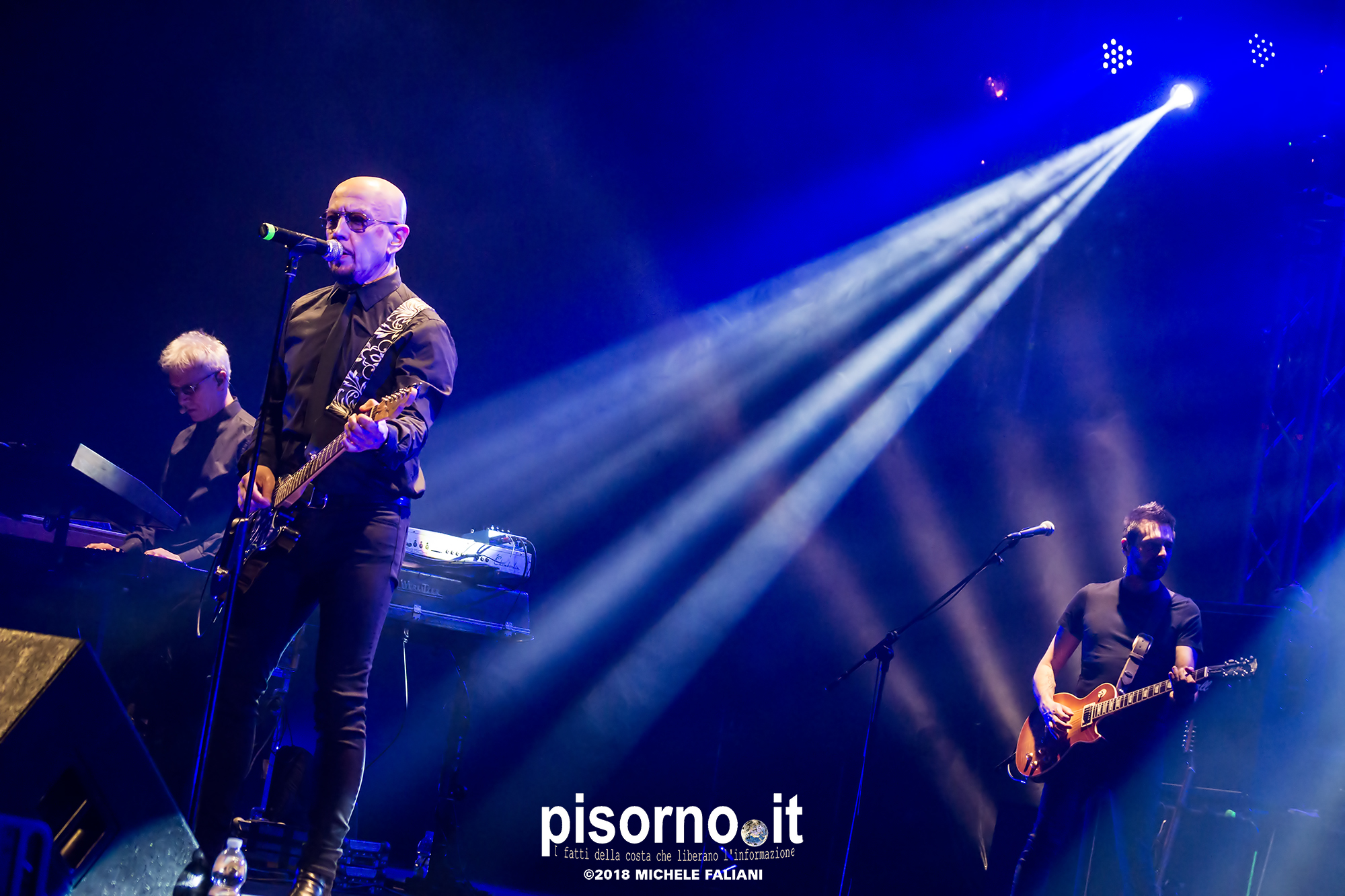 Dopo il felice ritorno a Sanremo di quest’anno con la bowiana Lettera dal Duca, c’era ancora più entusiasmo del solito all’idea di rivedere dal vivo i Decibel. L’impressione data all’Ariston era infatti quella di un gruppo ancora elegante e vitale, in grado di offrire uno show completo, in bilico anche stilistico tra il vecchio e il nuovo, tra gli anni Ottanta con il nuovo millennio, tra la vena quasi cabarettistica (ma sempre pungente) degli esordi e la riflessività poetica del Ruggeri più cantautoriale. Vestiti in perfetto stile new wave, pantaloni attillati, camicia nera in tinta e cravattino stretto (paradossalmente di moda tanto adesso quanto all’epoca), Ruggeri, Capeccia e Muzio sono arrivati al Teatro Verdi di Pisa decisi quindi a dar peso all’ultimo album in studio, L’Anticristo. Il suono in uscita dalle casse ha dato subito l’impressione di un’impronta live quasi più rock che wave, con le Gibson poste ben in primo piano. È bastato però l’attacco di brani storici come A Disagio e Indigestione Disko per far risaltare appieno i synth, i bassi e i controcanti del sound di Vivo da Re. Alla fine, dopo aver dedicato uno spazio anche a Polvere, capolavoro di Ruggeri in versione solista, il concerto si chiude ovviamente con Contessa, che in 38 anni non ha perso una goccia di attualità.