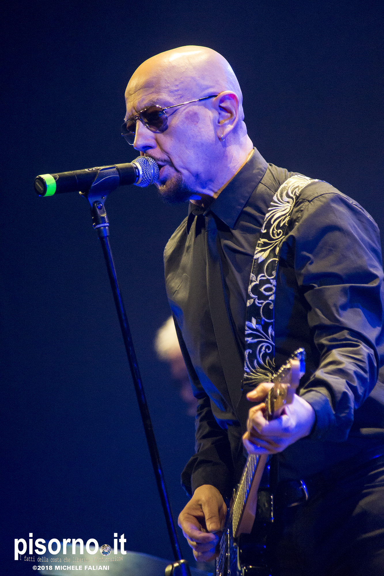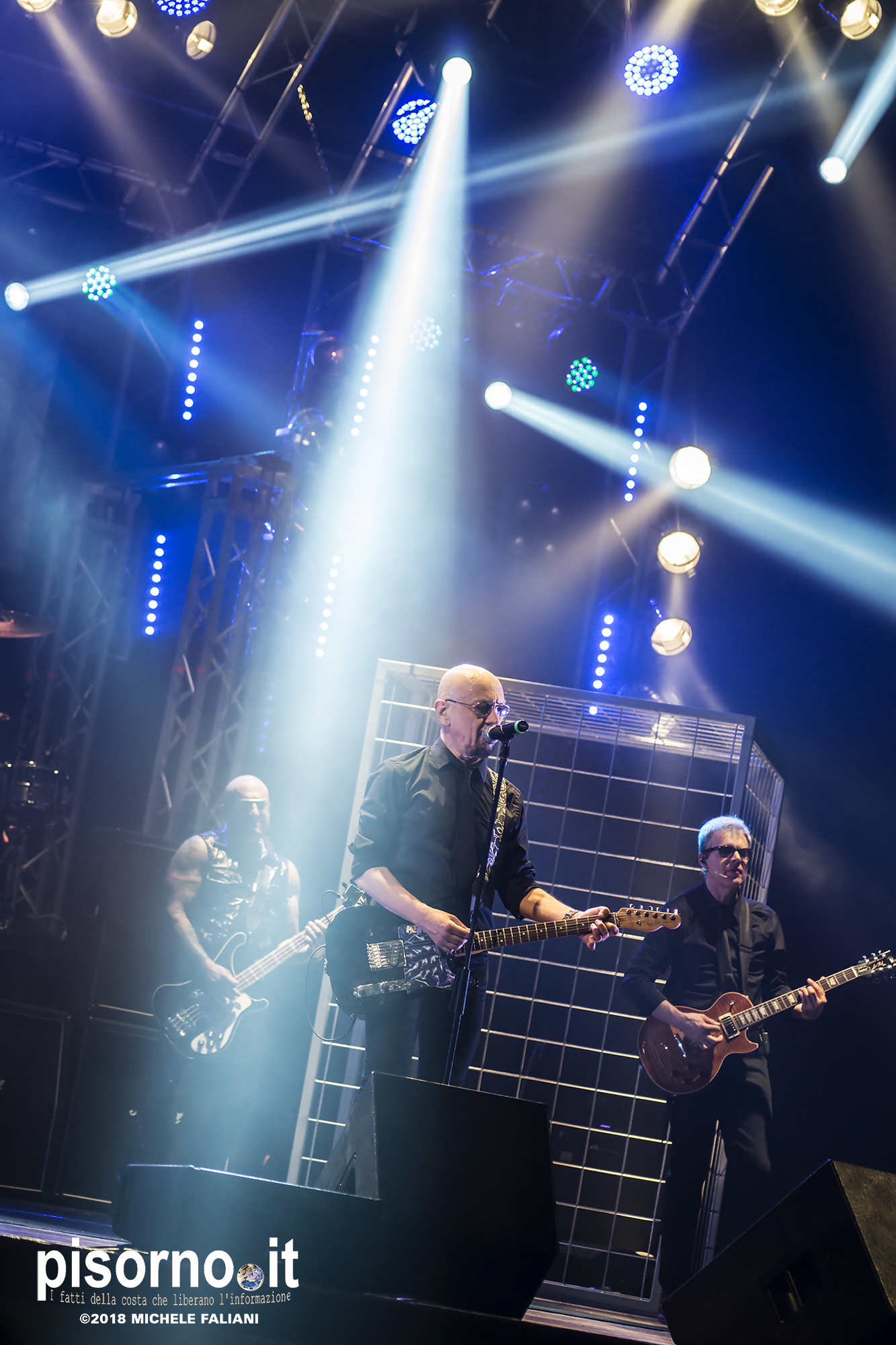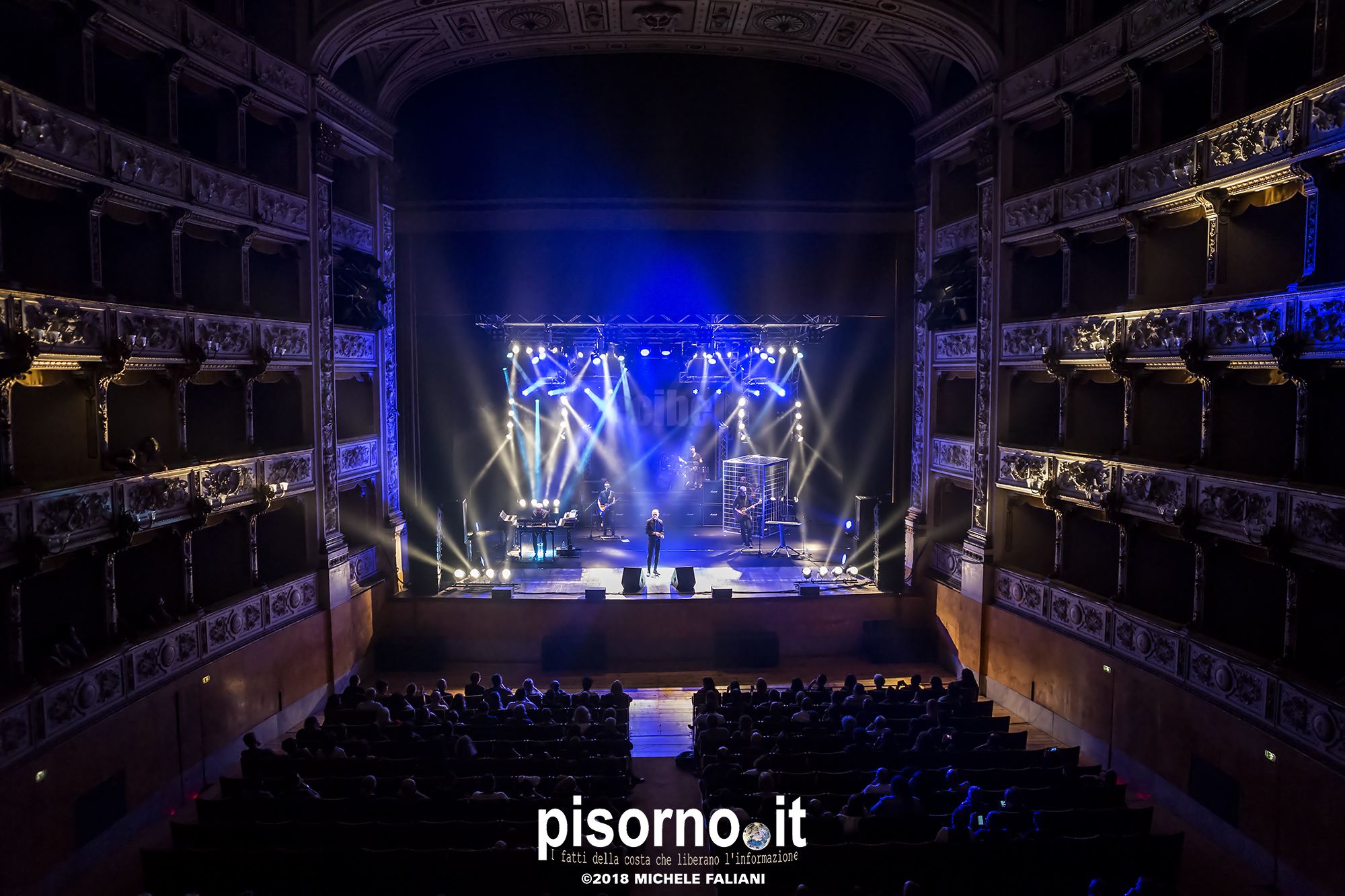 Dopo il felice ritorno a Sanremo di quest’anno con la bowiana Lettera dal Duca, c’era ancora più entusiasmo del solito all’idea di rivedere dal vivo i Decibel. L’impressione data all’Ariston era infatti quella di un gruppo ancora elegante e vitale, in grado di offrire uno show completo, in bilico anche stilistico tra il vecchio e il nuovo, tra gli anni Ottanta con il nuovo millennio, tra la vena quasi cabarettistica (ma sempre pungente) degli esordi e la riflessività poetica del Ruggeri più cantautoriale. Vestiti in perfetto stile new wave, pantaloni attillati, camicia nera in tinta e cravattino stretto (paradossalmente di moda tanto adesso quanto all’epoca), Ruggeri, Capeccia e Muzio sono arrivati al Teatro Verdi di Pisa decisi quindi a dar peso all’ultimo album in studio, L’Anticristo. Il suono in uscita dalle casse ha dato subito l’impressione di un’impronta live quasi più rock che wave, con le Gibson poste ben in primo piano. È bastato però l’attacco di brani storici come A Disagio e Indigestione Disko per far risaltare appieno i synth, i bassi e i controcanti del sound di Vivo da Re. Alla fine, dopo aver dedicato uno spazio anche a Polvere, capolavoro di Ruggeri in versione solista, il concerto si chiude ovviamente con Contessa, che in 38 anni non ha perso una goccia di attualità.