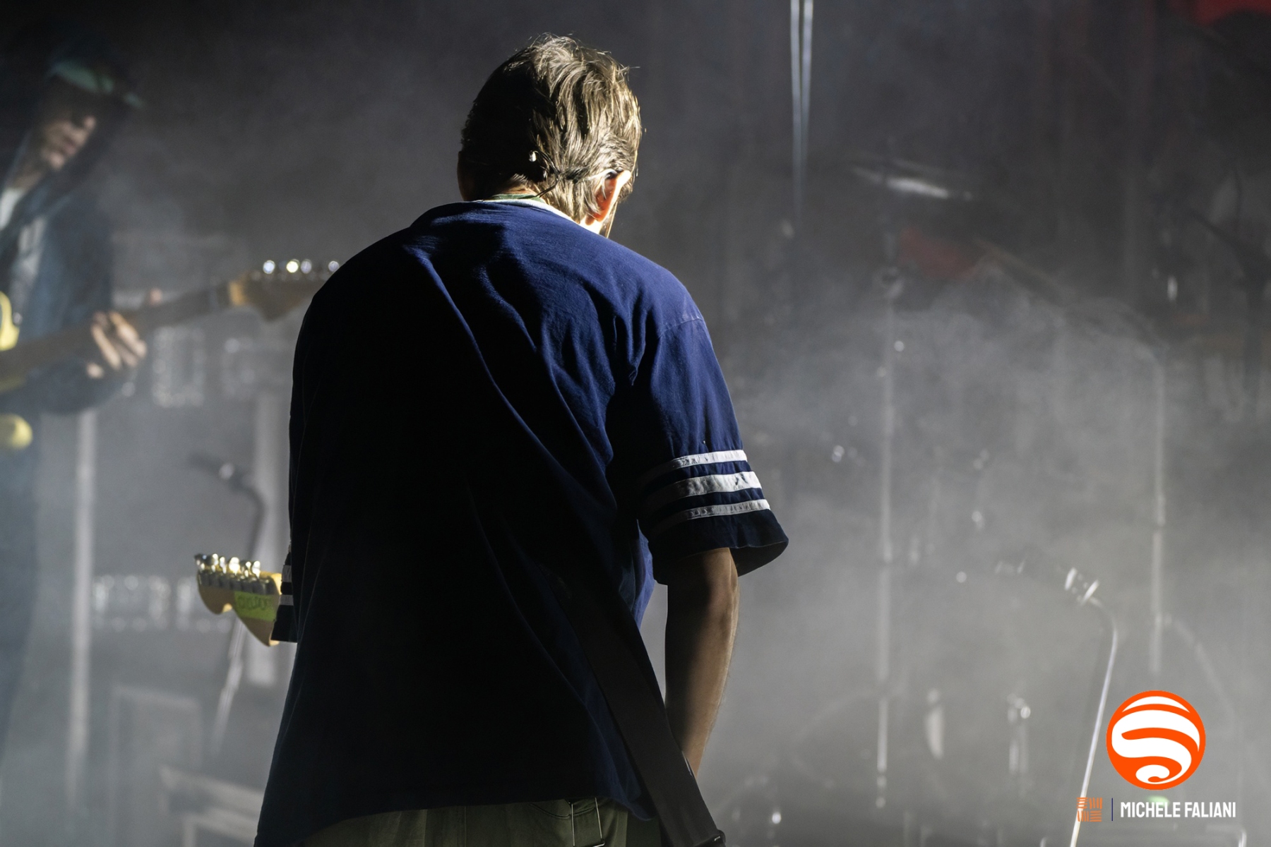 Quando i DIIV fanno il loro ingresso sul palco, accoglienza euforica e applausi scroscianti. Senza preamboli, la band avvia il set con la sequenza In Amber, Like Before You Were Born e Brown Paper Bag, tre brani capaci di abbattere qualsiasi esitazione iniziale e catapultare immediatamente il pubblico in un mare di suoni. Chitarre avvolgenti e stratificate, linee di basso incessanti e una batteria capace di alternare momenti sospesi a esplosioni trascinanti creano un muro sonoro che travolge ogni cosa. Su questo tappeto si innesta la voce di Zachary Cole Smith, fragile ed evanescente, che si fa strada tra le onde acustiche con un fascino ipnotico.