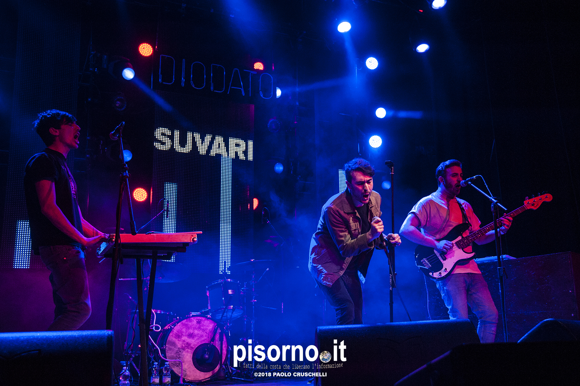 Il sabato sera al The Cage comincia con le sonorità elettroniche di SUVARI, progetto solista di Luca de Santis, accompagnato sul palco da Antonio Canestri e Cristiano Cappellini.