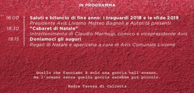 Venerdì 21 dicembre, dalle ore 18 al Teatro Cral Eni di Livorno, si svolgerà l’evento di Natale dei donatori di plasma e sangue livornesi