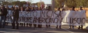 trw.8Muniti di striscioni, fumogeni e con tanta buona volontà di marciare, si sono diretti fuori dalla base statunitense di Camp Darby, obbligando l’Aurelia alla chiusura al traffico per circa due ore, fino a mezzogiorno, quando il presidio si è concluso.
