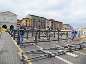Dopo Luminara e Palio di San Ranieri, già si pensa al Gioco del Ponte. Sono iniziate stamattina, sabato 18 giugno, le operazioni per il montaggio sul ponte di Mezzo del carrello, quest’anno ristrutturato grazie ad un investimento di 50mila euro dell’Amministrazione Comunale.