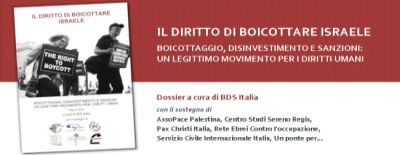 Pubblichiamo il dossier “Il Diritto di boicottare Israele – Boicottaggio, Disinvestimento e Sanzioni: un legittimo movimento per i diritti umani”, a cura di BDS Italia con il sostegno di AssoPace Palestina, Centro Studi Sereno Regis, Pax Christi Italia, Rete Ebrei Contro l’occupazione, Servizio Civile Internazionale Italia e Un ponte per…