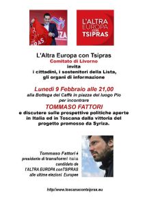 Assaggio labronico di ricomposizione del tessuto sociale e culturale che, il neoliberismo ha diviso e frammentato. Con Tommaso Fattori, candidato della lista Tsipras, già nel Social forum di Firenze: pisorno.it/oggi-in-grecia-domani-in-toscana-lunedi-9febbraio-alla-bottega-del-caffe. Un dibattito aperto che non nasce oggi e da sviluppare sul futuro, infatti se gli orientamenti del Social Forum Europeo fossero stati proiettati in politica – inizia Fattori- oggi non ci troveremmo in questa situazione.