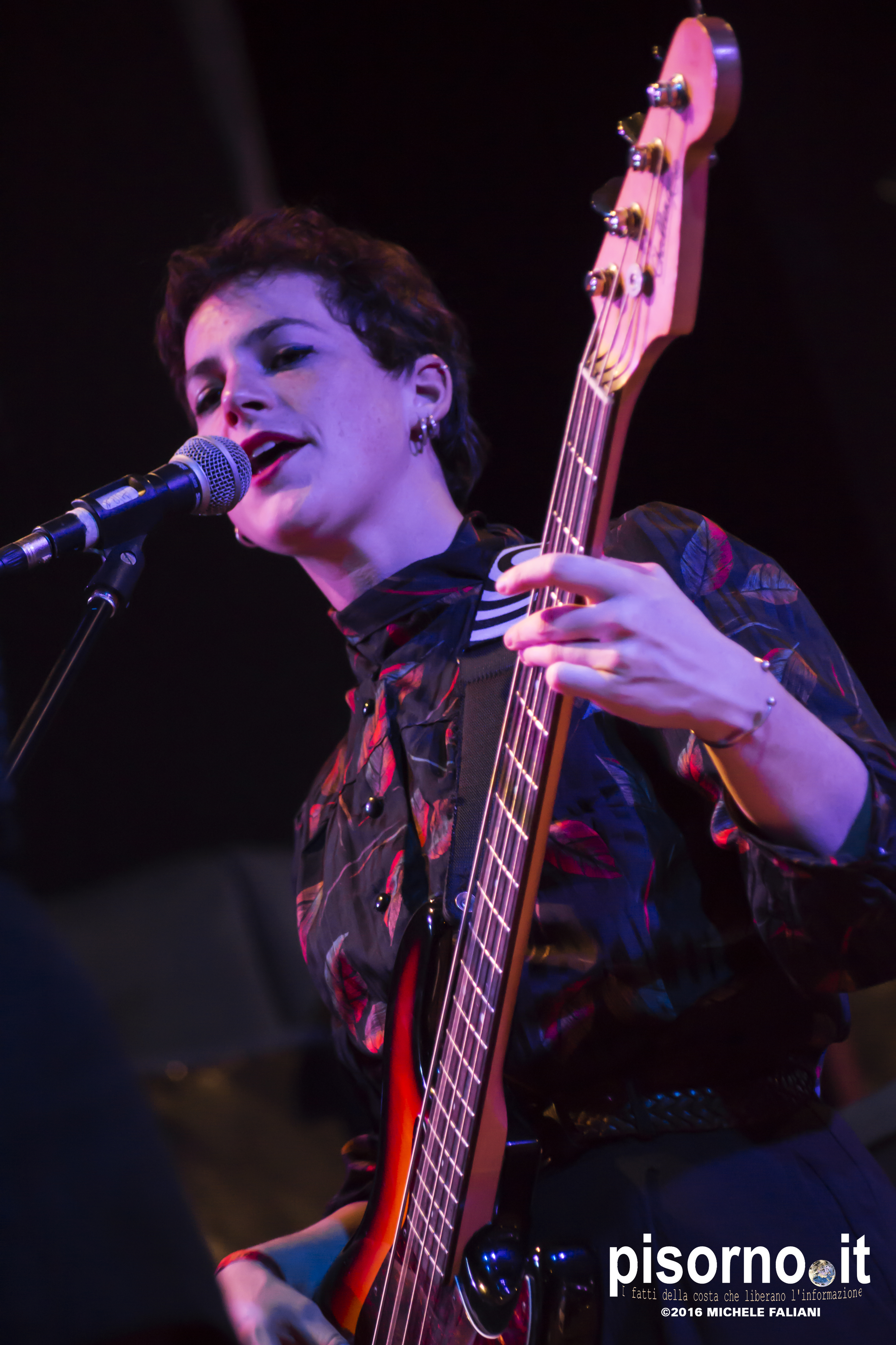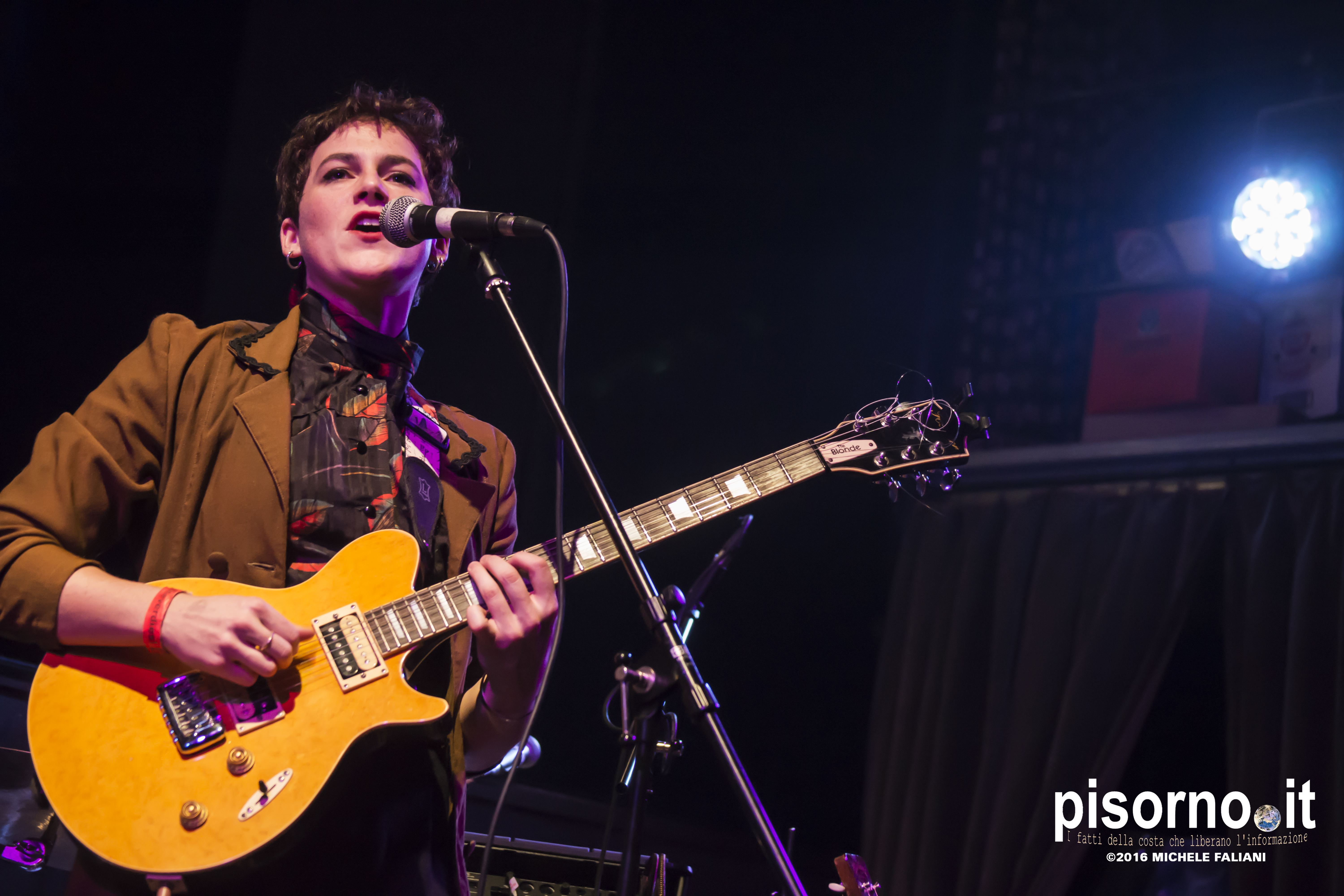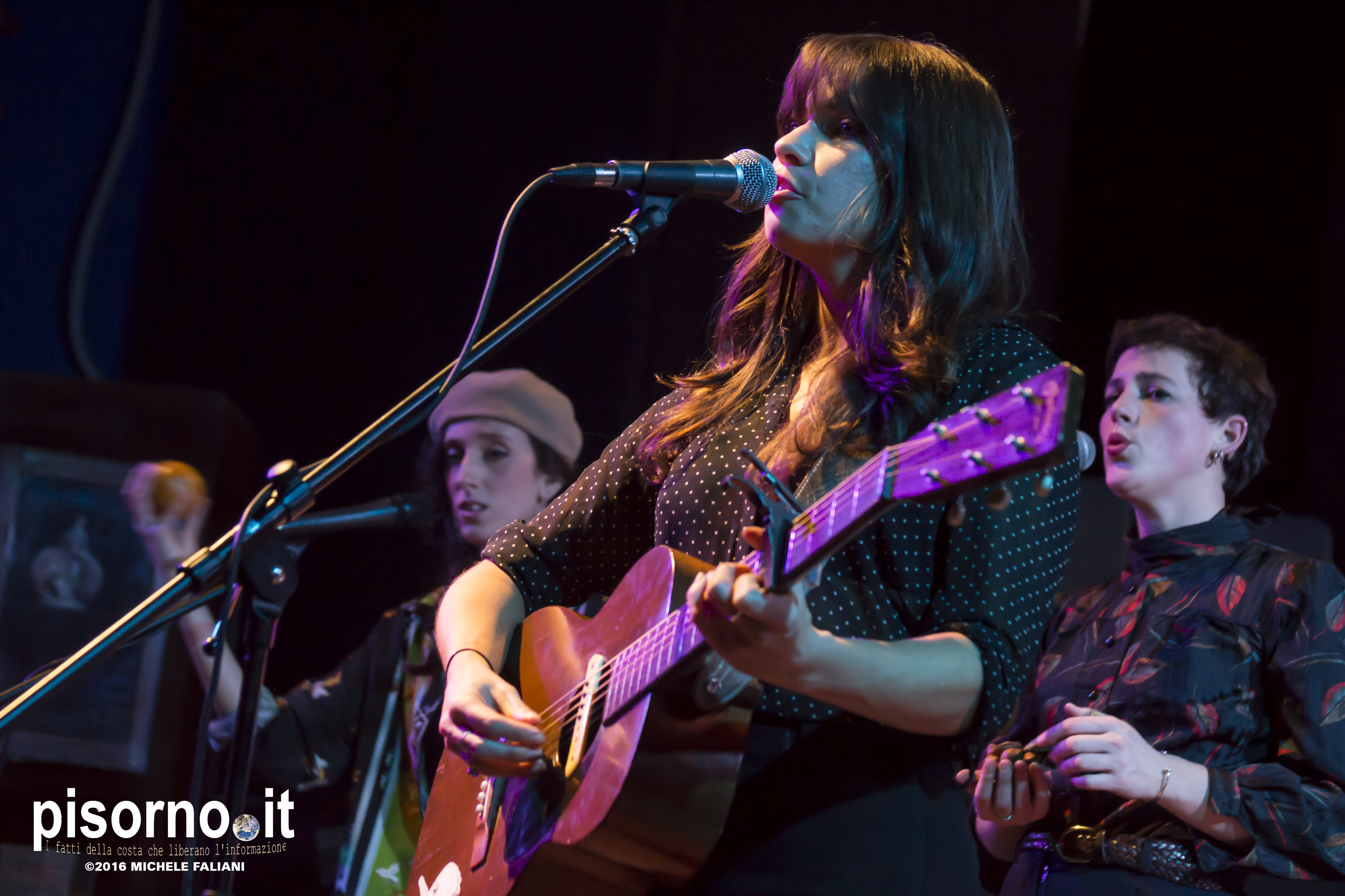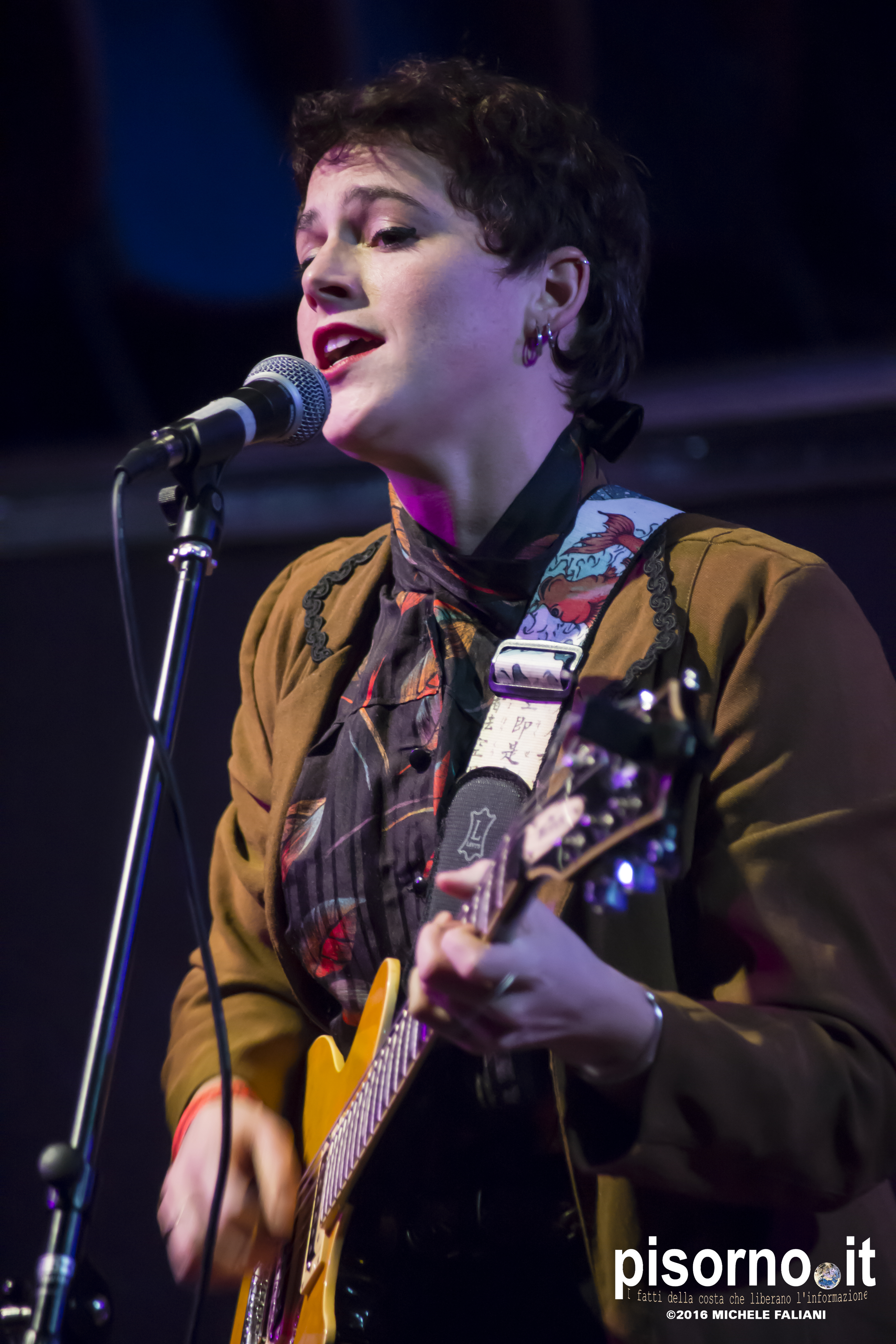 Più di un’ora di irresistibili canzoni in bilico fra pop e folk, alcune già ascoltate nel precedente concerto all’Aurora dello scorso anno, altre che fanno parte di un album di prossima uscita, registrato (guarda un po’ il caso) proprio a Livorno con la produzione artistica di Appino degli Zen Circus. Accompagnata da una band tutta al femminile (le Ginger Bender, duo milanese che ha aperto il concerto con un proprio set, e Julie Ant alla batteria), Erin K ha regalato 15 canzoni più un bis totalmente unplugged, partendo dal primo singolo “Coins” fino ad “Assholio” (che vi linkiamo a fine pagina). Un concerto davvero coinvolgente e divertente. Erin tornerà, e se ve la siete persa, la prossima volta vedete di non mancare.