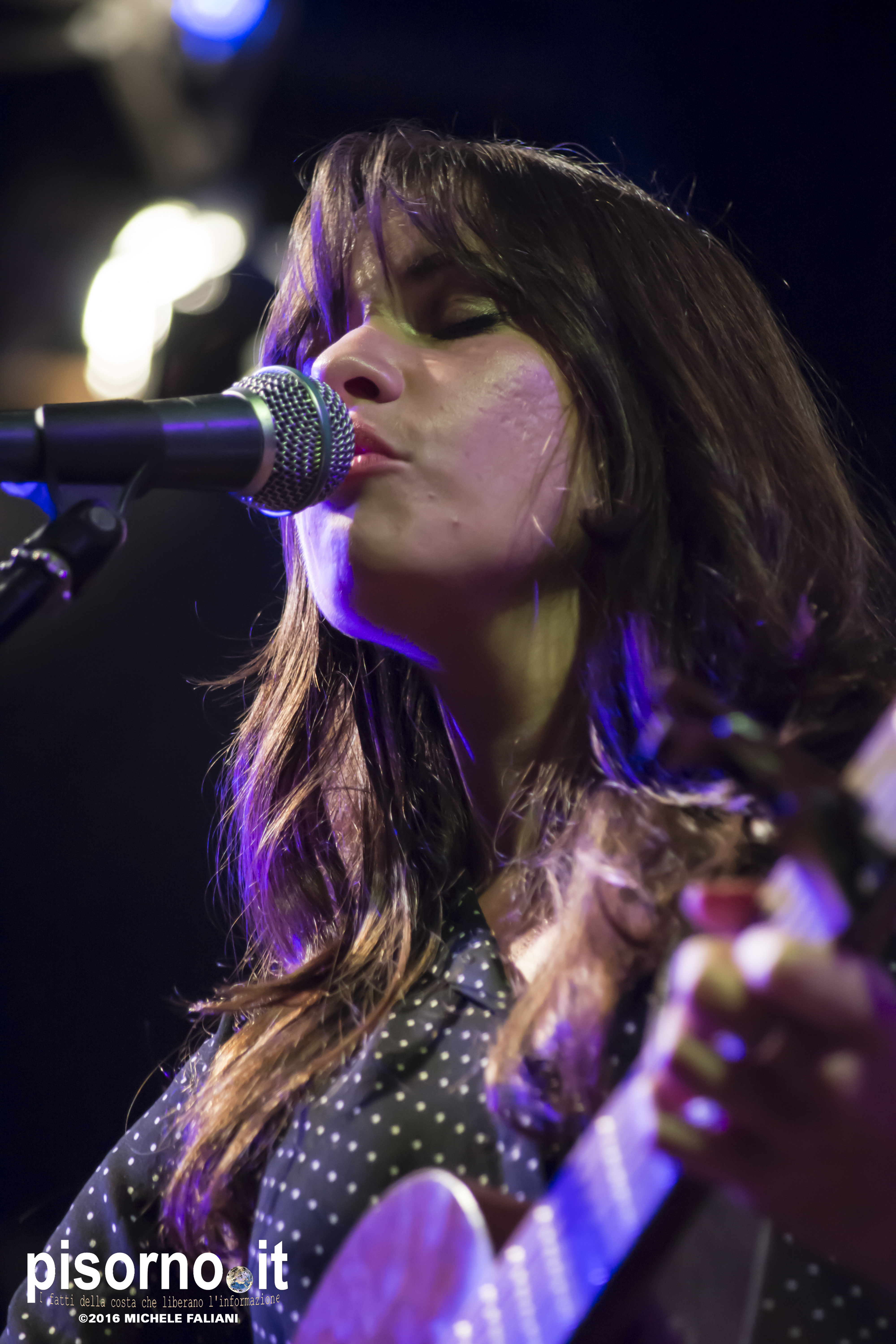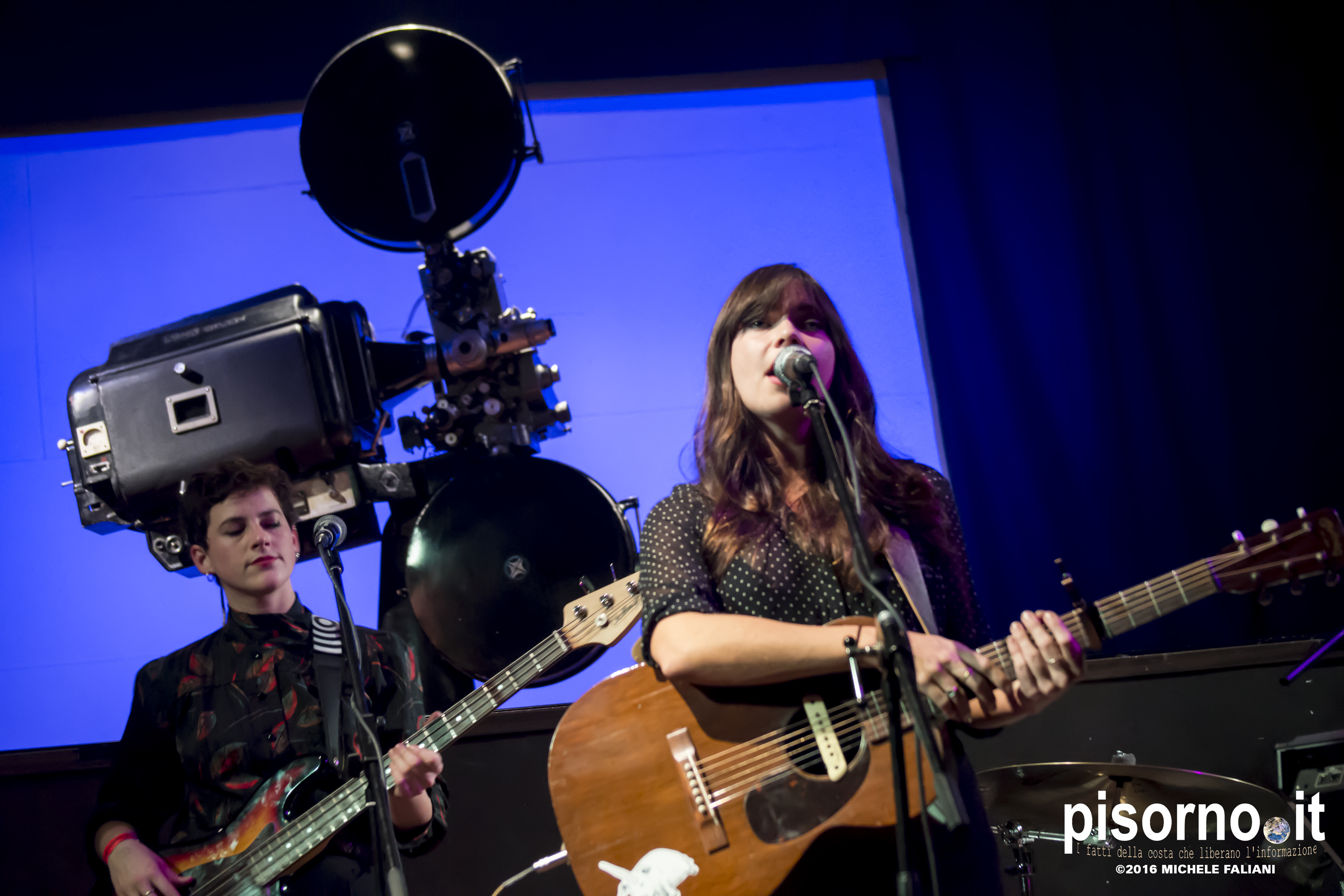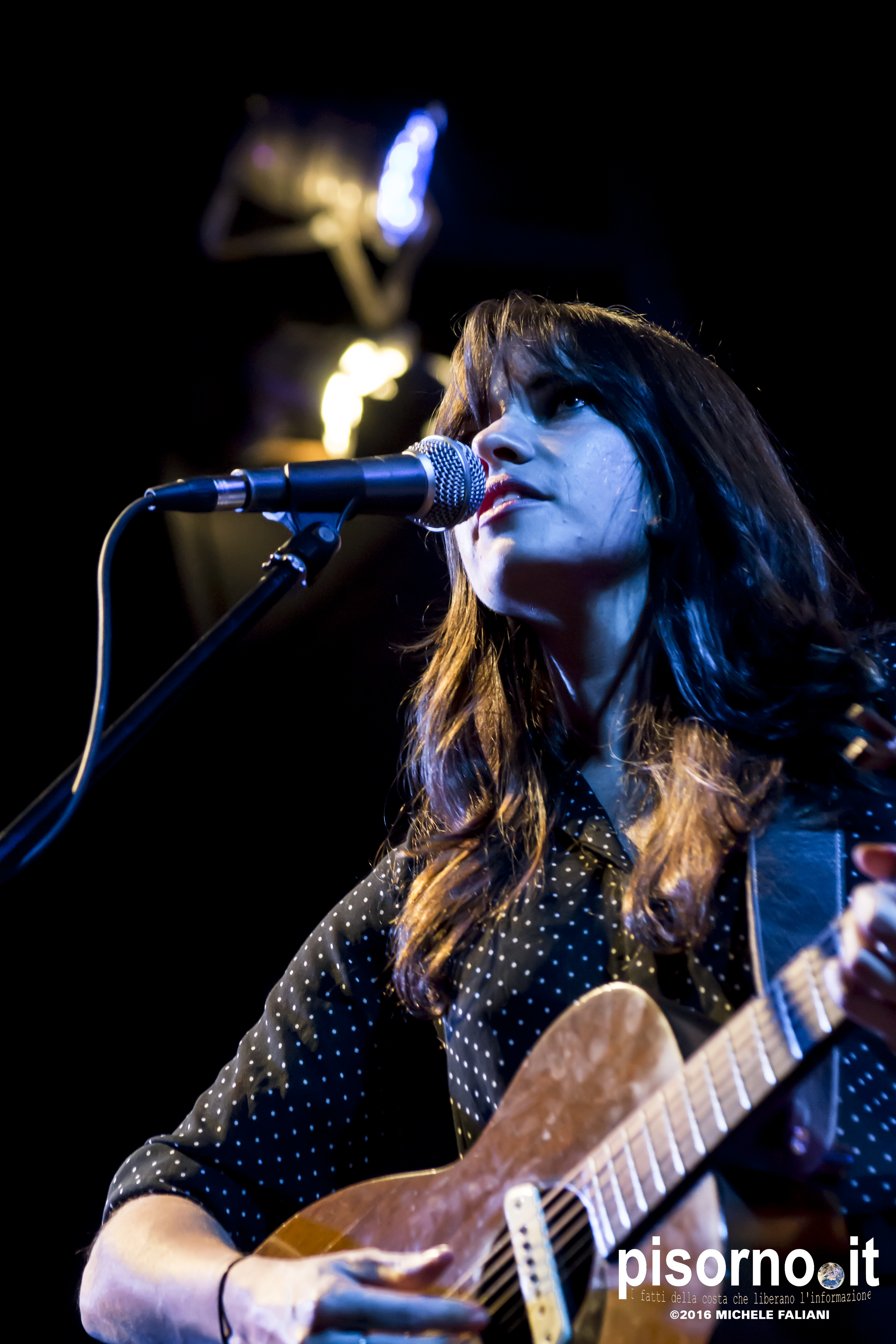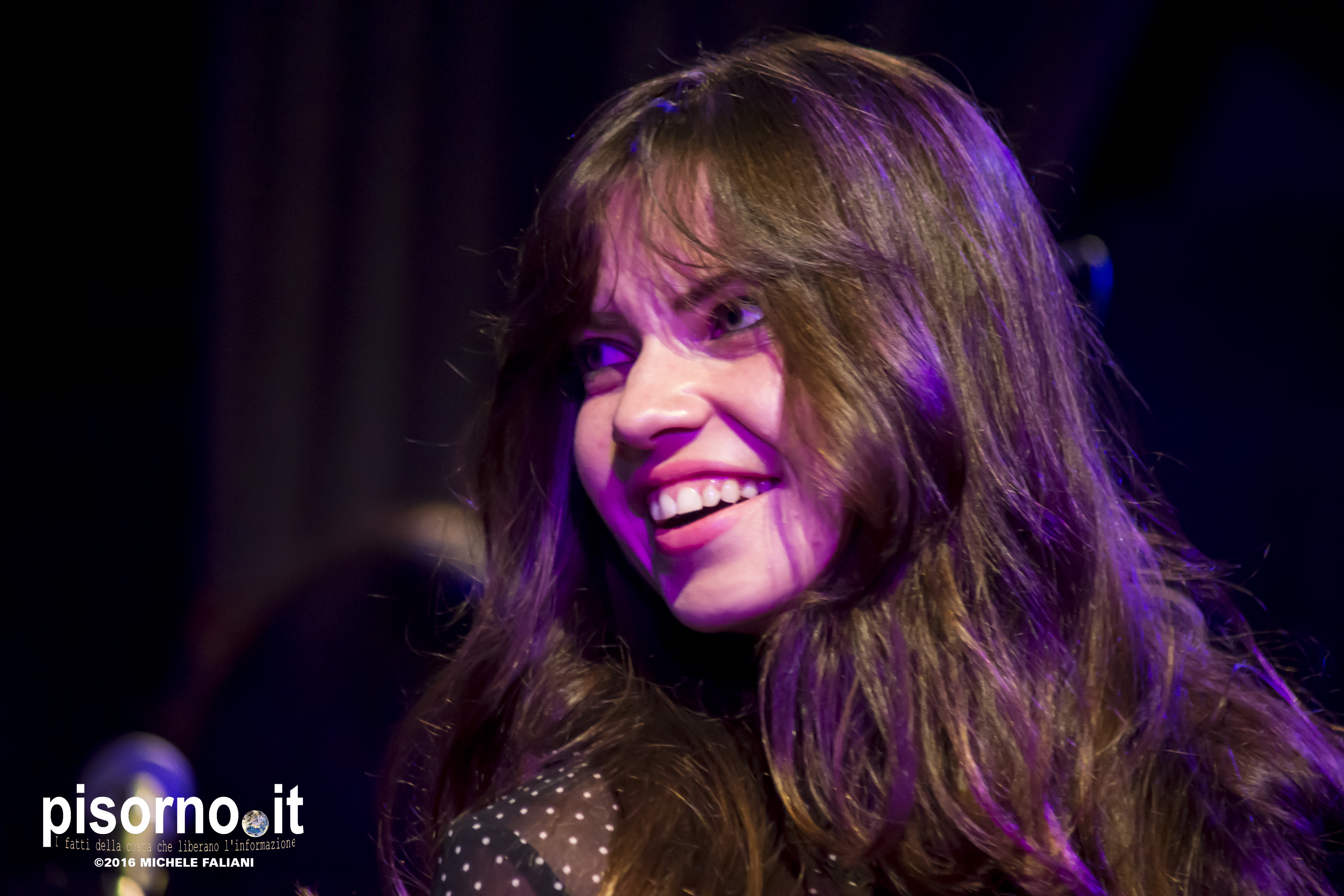 Più di un’ora di irresistibili canzoni in bilico fra pop e folk, alcune già ascoltate nel precedente concerto all’Aurora dello scorso anno, altre che fanno parte di un album di prossima uscita, registrato (guarda un po’ il caso) proprio a Livorno con la produzione artistica di Appino degli Zen Circus. Accompagnata da una band tutta al femminile (le Ginger Bender, duo milanese che ha aperto il concerto con un proprio set, e Julie Ant alla batteria), Erin K ha regalato 15 canzoni più un bis totalmente unplugged, partendo dal primo singolo “Coins” fino ad “Assholio” (che vi linkiamo a fine pagina). Un concerto davvero coinvolgente e divertente. Erin tornerà, e se ve la siete persa, la prossima volta vedete di non mancare.