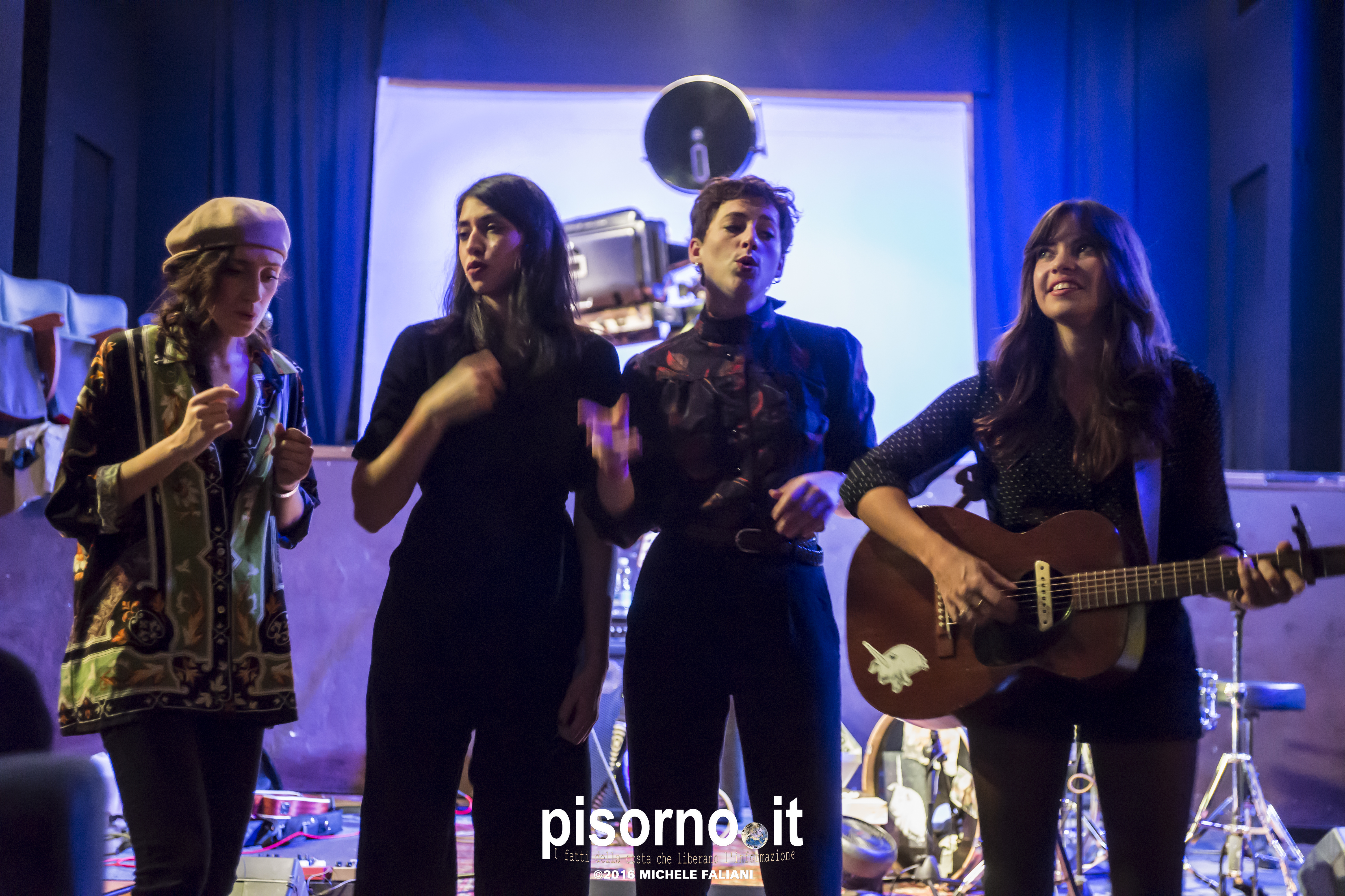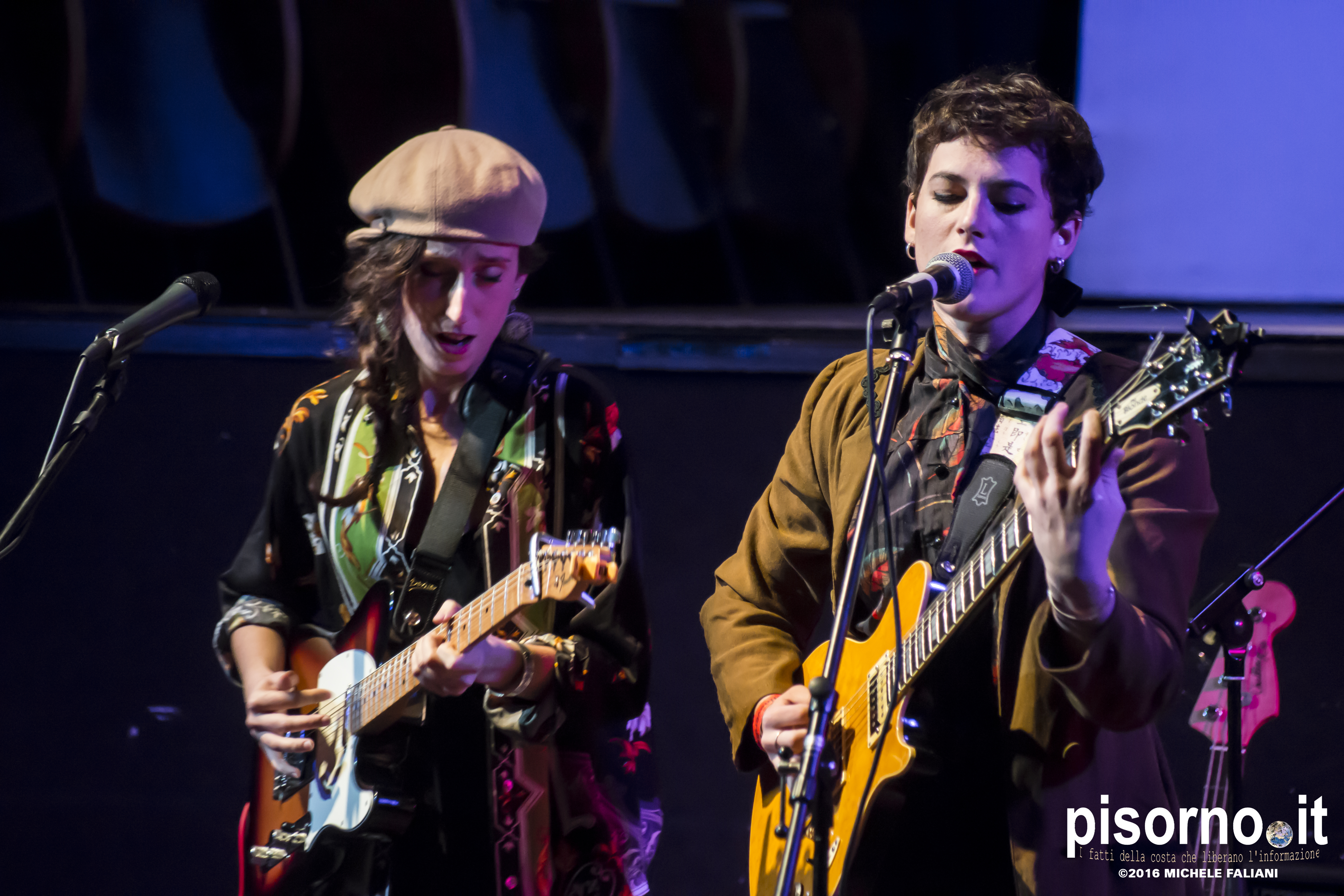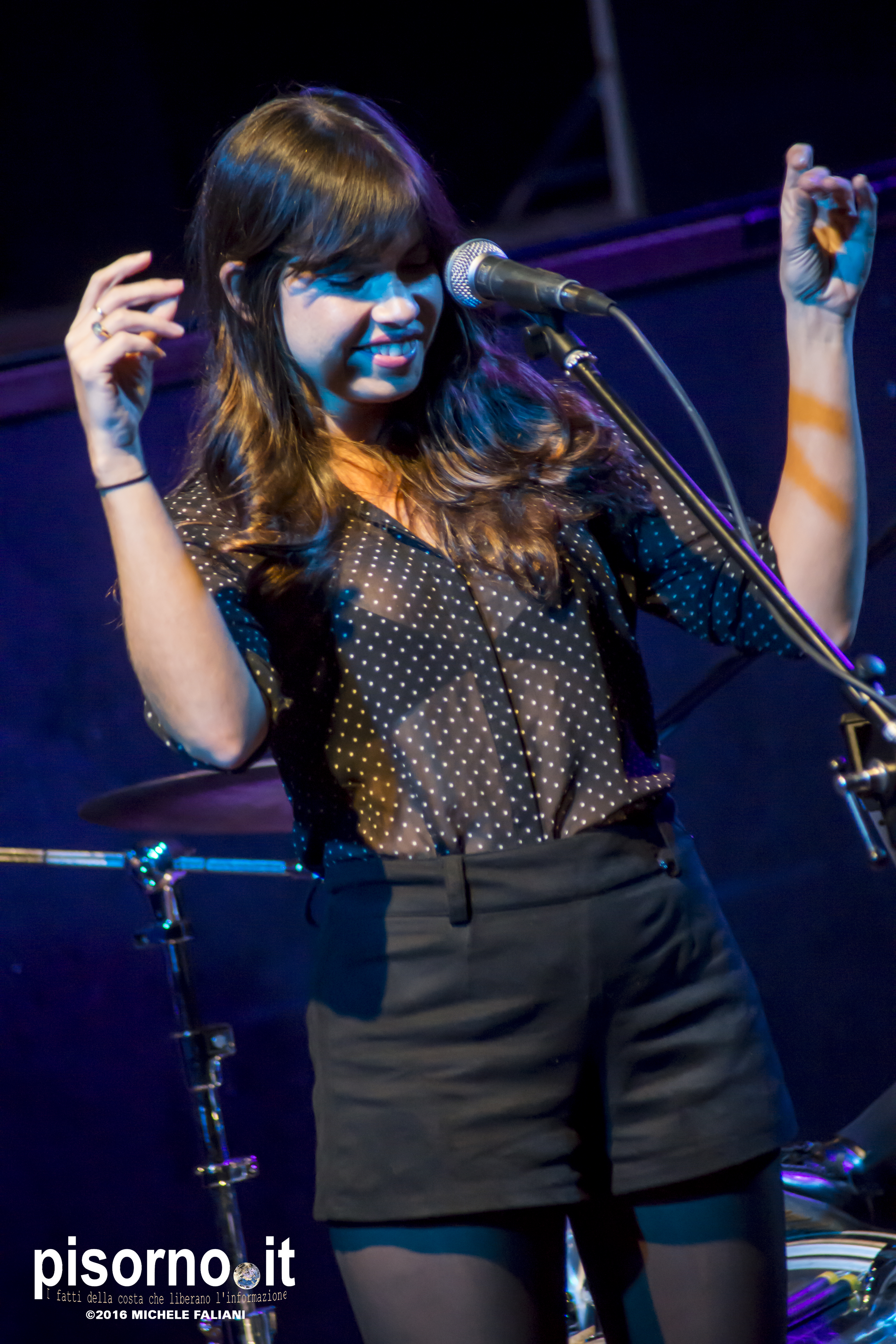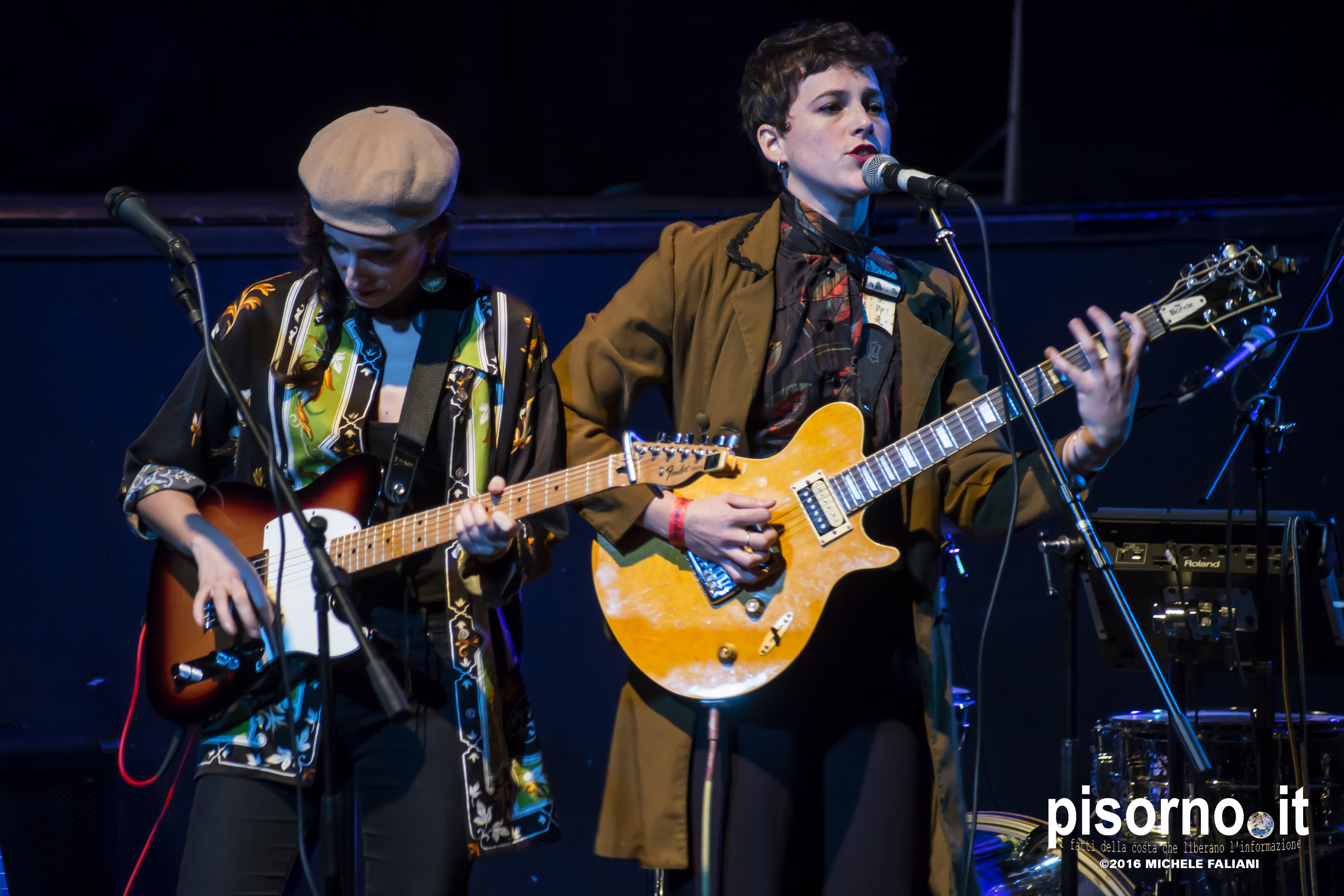 Più di un’ora di irresistibili canzoni in bilico fra pop e folk, alcune già ascoltate nel precedente concerto all’Aurora dello scorso anno, altre che fanno parte di un album di prossima uscita, registrato (guarda un po’ il caso) proprio a Livorno con la produzione artistica di Appino degli Zen Circus. Accompagnata da una band tutta al femminile (le Ginger Bender, duo milanese che ha aperto il concerto con un proprio set, e Julie Ant alla batteria), Erin K ha regalato 15 canzoni più un bis totalmente unplugged, partendo dal primo singolo “Coins” fino ad “Assholio” (che vi linkiamo a fine pagina). Un concerto davvero coinvolgente e divertente. Erin tornerà, e se ve la siete persa, la prossima volta vedete di non mancare.