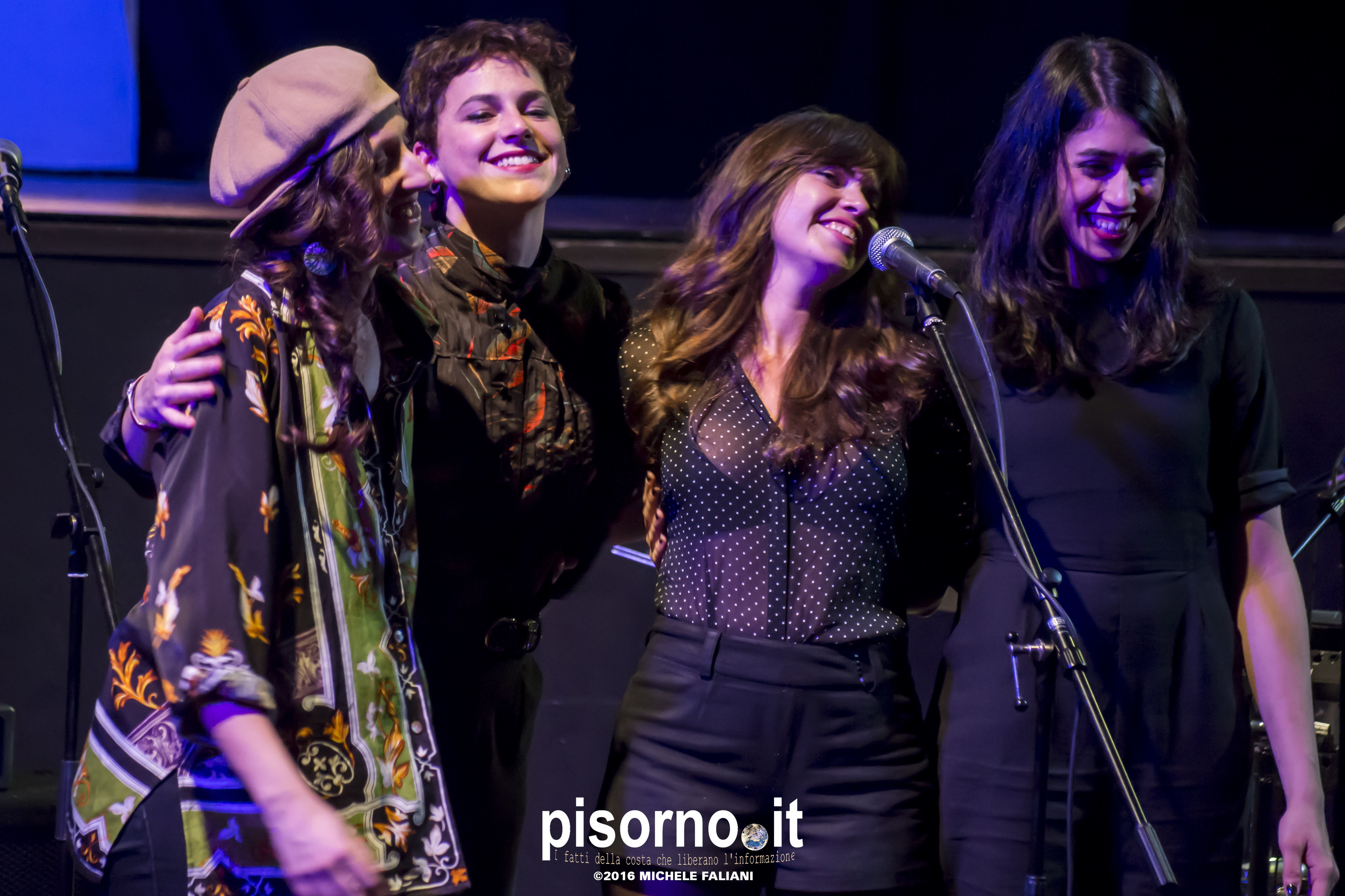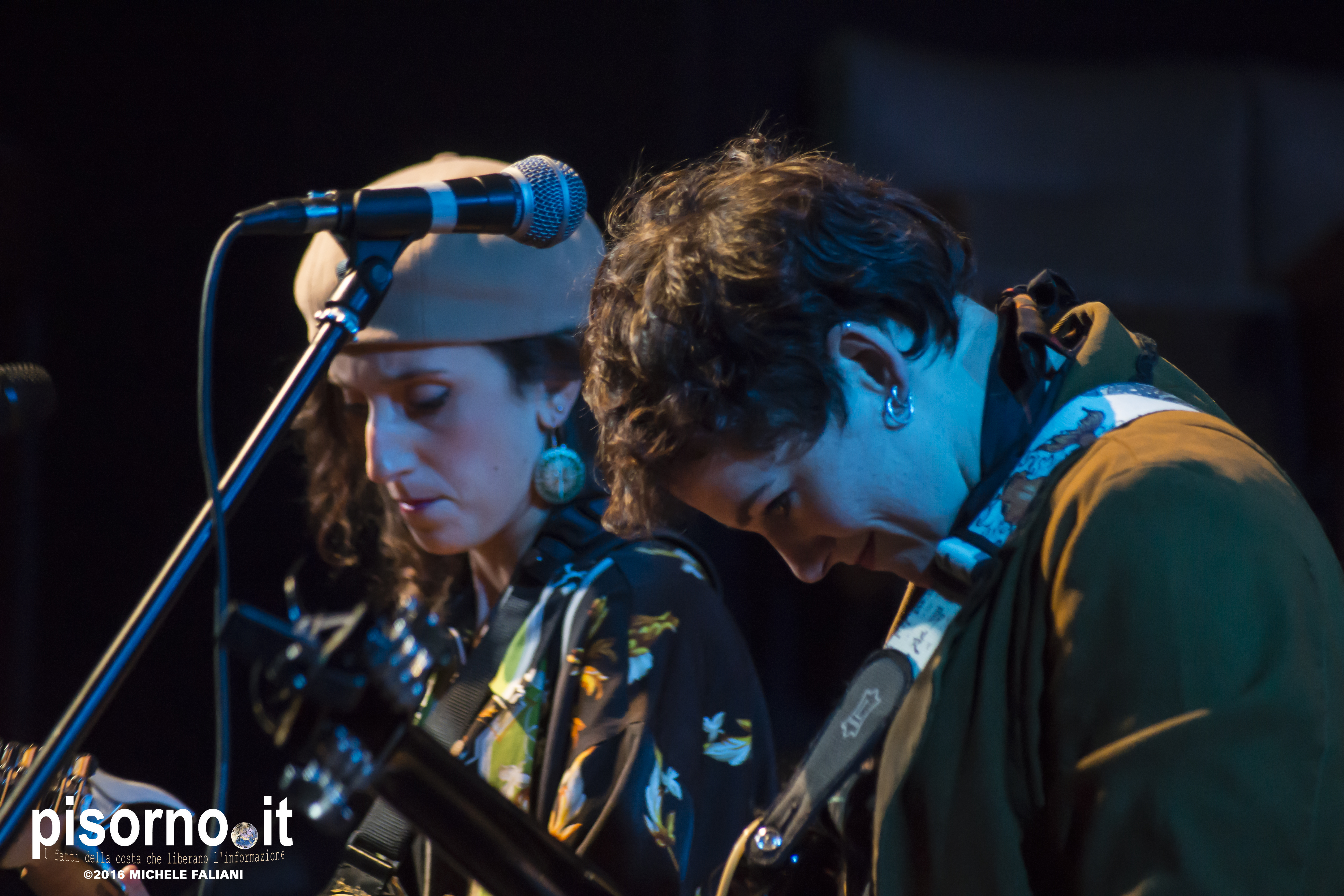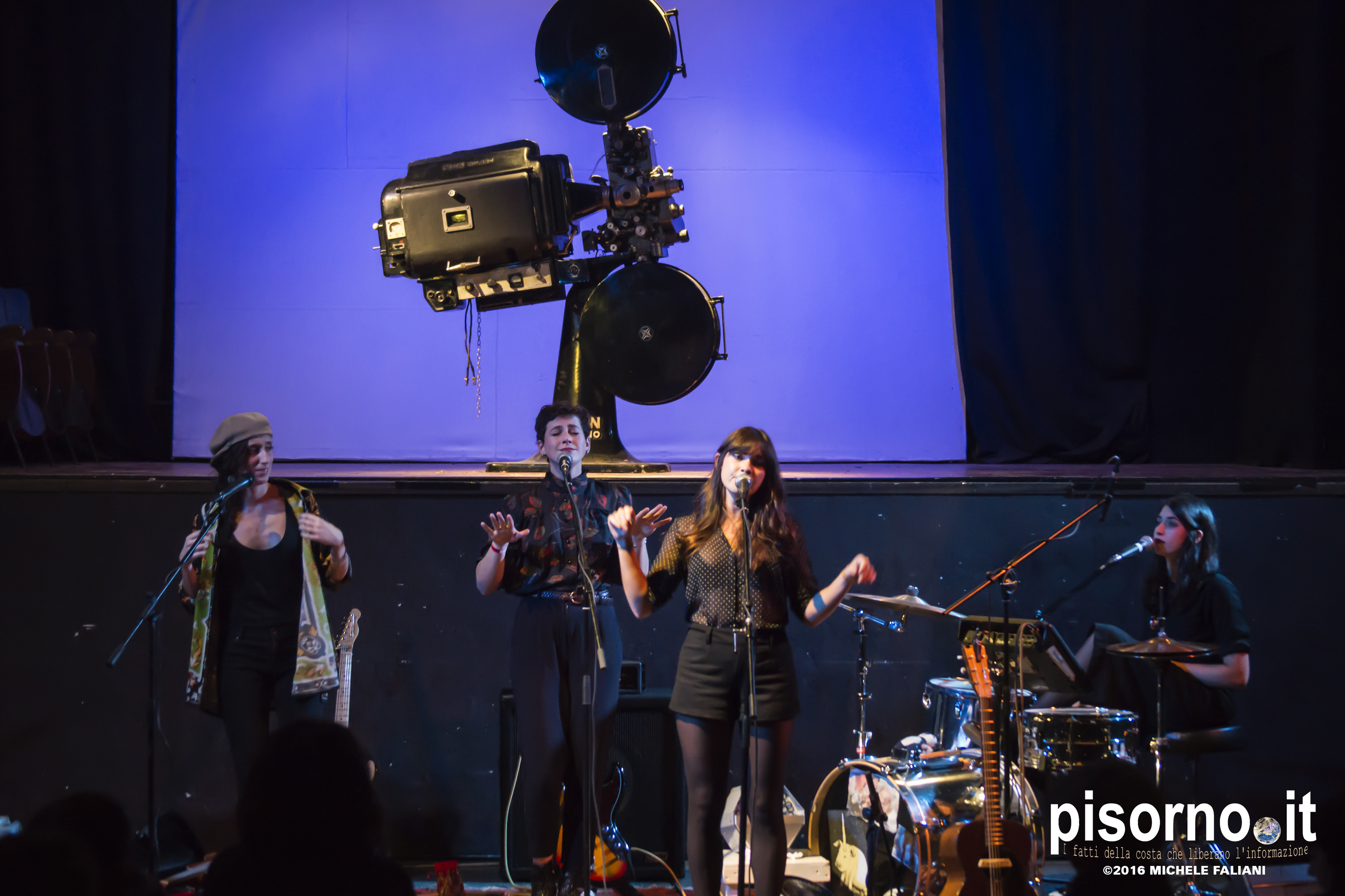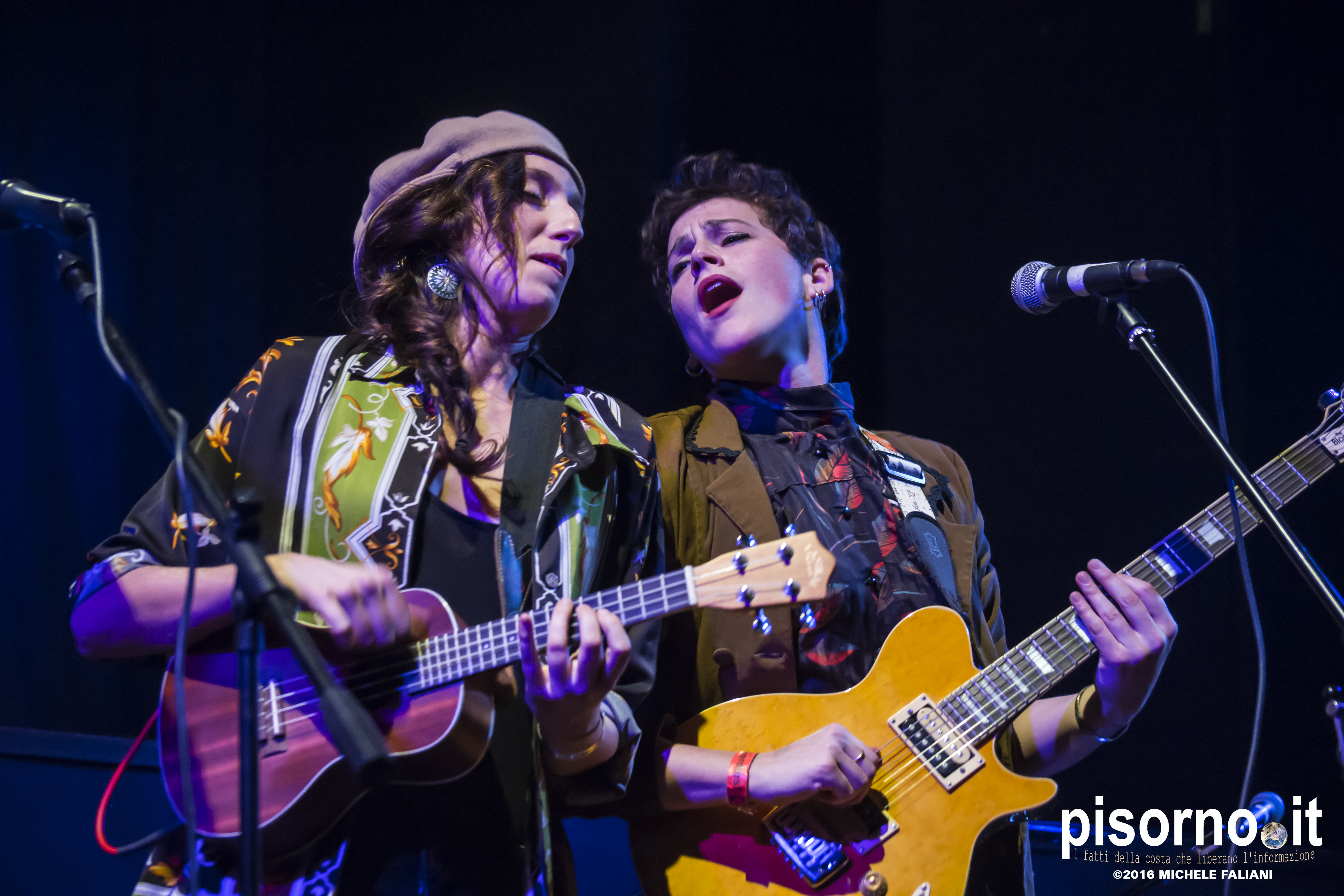 Più di un’ora di irresistibili canzoni in bilico fra pop e folk, alcune già ascoltate nel precedente concerto all’Aurora dello scorso anno, altre che fanno parte di un album di prossima uscita, registrato (guarda un po’ il caso) proprio a Livorno con la produzione artistica di Appino degli Zen Circus. Accompagnata da una band tutta al femminile (le Ginger Bender, duo milanese che ha aperto il concerto con un proprio set, e Julie Ant alla batteria), Erin K ha regalato 15 canzoni più un bis totalmente unplugged, partendo dal primo singolo “Coins” fino ad “Assholio” (che vi linkiamo a fine pagina). Un concerto davvero coinvolgente e divertente. Erin tornerà, e se ve la siete persa, la prossima volta vedete di non mancare.