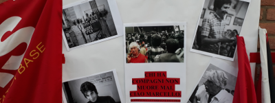 “L’ultimo pensiero è per te, Marcello, che salutiamo a pugno chiuso e intonando le canzoni di lotta che tu tanto hai amato.”