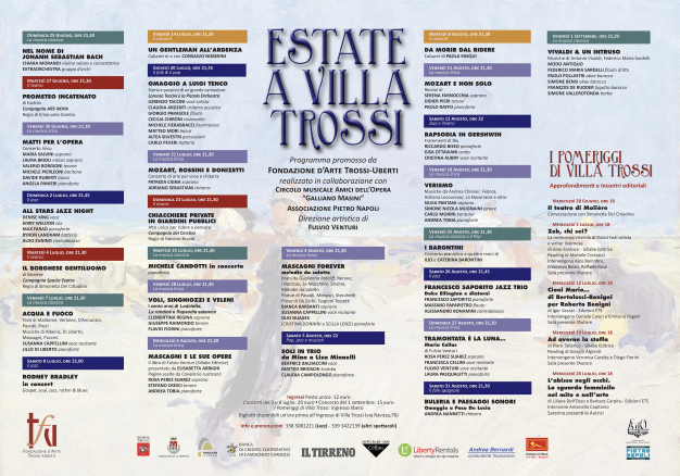 Si tratta di 30 appuntamenti divisi fra spettacolo, musica e incontri editoriali, per un programma promosso da Fondazione Trossi-Uberti e realizzato in collaborazione con Circolo musicale Amici dell’Opera “Galliano Masini” e Associazione Pietro Napoli, per la direzione artistica di Fulvio Venturi. La rassegna pone grande attenzione alla musica classica dedicando a Bach e Vivaldi i concerti d’apertura e chiusura, con una valorosa esecutrice come Chiara Morandi ed un grande interprete come Federico Maria Sardelli, ma dando spazio anche a giovani emergenti come le pianiste Michelle Candotti e Caterina Barontini.