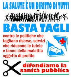 Che sono a rischio servizi che un paese civile dovrebbe invece salvaguardare e potenziare soprattutto se pensiamo che già oggi si risparmia sulle visite di prevenzione, sulle cure alla persona che rappresentano per molti una spesa insostenibile per il budget familiare I tagli alla sanità colpiscono lavoratori del settore e cittadinanza, lavoratore della sanità sempre più alle prese con un sistema che sta andando in malora, che si regge sempre più spesso sul senso di responsabilità e di solidarietà degli operatori, i quali vivono una condizione lavorativa in continuo peggioramento, ne vedono di tutti i colori, cercano di porvi rimedio col loro impegno.