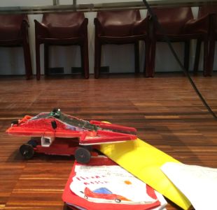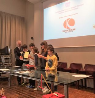 I bambini, partendo da un kit composto da materiali diversi (motorino, puleggia, porta batterie, cavo elettrico bipolare, asticelle di legno, ecc.) devono progettare un giocattolo funzionante. I gruppi partecipanti si suddividono i compiti e ognuno contribuisce alla realizzazione del progetto proprio come avviene nello studio e sviluppo di un prodotto industriale (progetto, disegno, studio grafico, realizzazione campagna pubblicitaria). 6 i progetti finalisti sono stati giudicati da una commissione di cui faceva gentilmente parte anche il professor Andrea Stefanini rappresentante dalla Associazione Italiana per l’insegnamento della Fisica – AIF, secondo una griglia di valutazione che tiene conto dell’inventiva, delle soluzioni tecniche adottate, della gestione del processo di marketing, ecc..