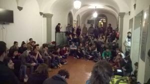 La risposta è stata subito determinata: un corteo sempre più numeroso e blocchi per tutta la città, attraversando dipartimenti, piazze e mense, arrivando a occupare la facoltà di lettere dove si è tenuta un’assemblea finale di rilancio della mobilitazione.