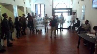 Dopo la scorta a Filippeschi e la militarizzazione del consiglio comunale (costi a carico dei cittadini che preferirebbero avere strade non dissestate e illuminate) ora è la volta della Digos armata di pistola che fa irruzione dentro l’ex Gea, un gesto inutile e spropositato per la natura pacifica dell’occupazione il cui scopo era la denuncia di come l’ateneo ha gestito i suoi spazi (chiunque con le porte aperte avrebbe potuto entrare negli immobili) oltre alla mobilitazione contro il nuovo isee.