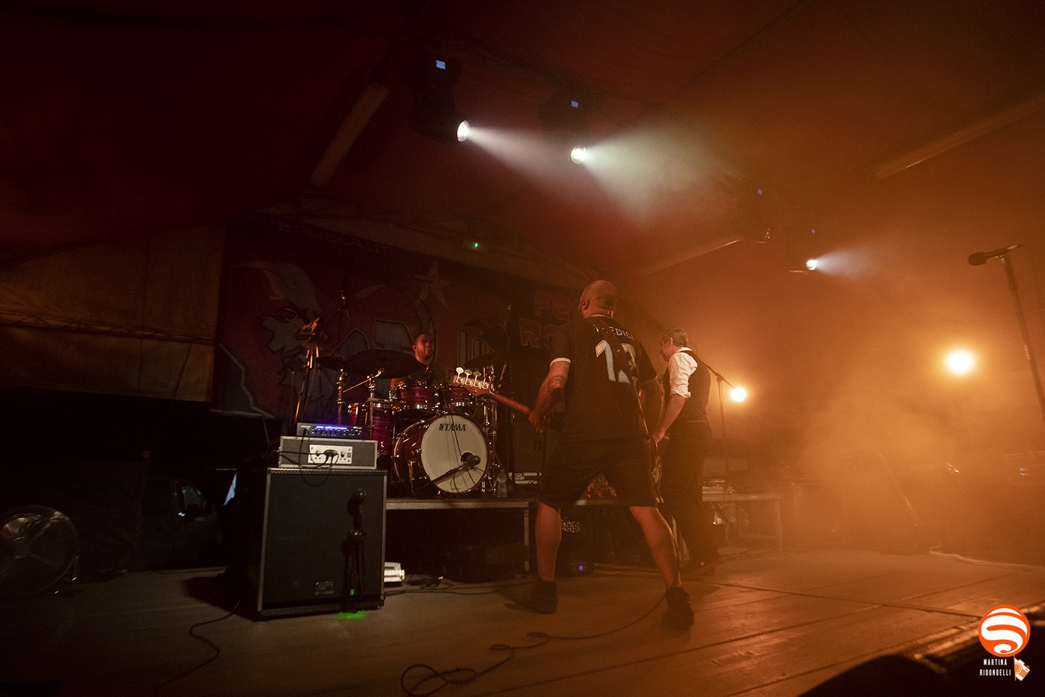 Headliner della serata i Meganoidi, attesissimi, che  confermano la loro solidità dal vivo, con una performance che mantiene intatta la potenza espressiva degli esordi. “La fine”, “M.r.s.” e “Altrove” restituiscono un punk diretto e incisivo, arricchito dalla tromba di Guercio, elemento distintivo capace di esaltare l’impatto sonoro e il coinvolgimento del pubblico. Il momento più atteso è “Supereroi contro la municipale”, accolta con entusiasmo unanime e cantato da tutti, compresi i volontari dei bar e del ristorante.