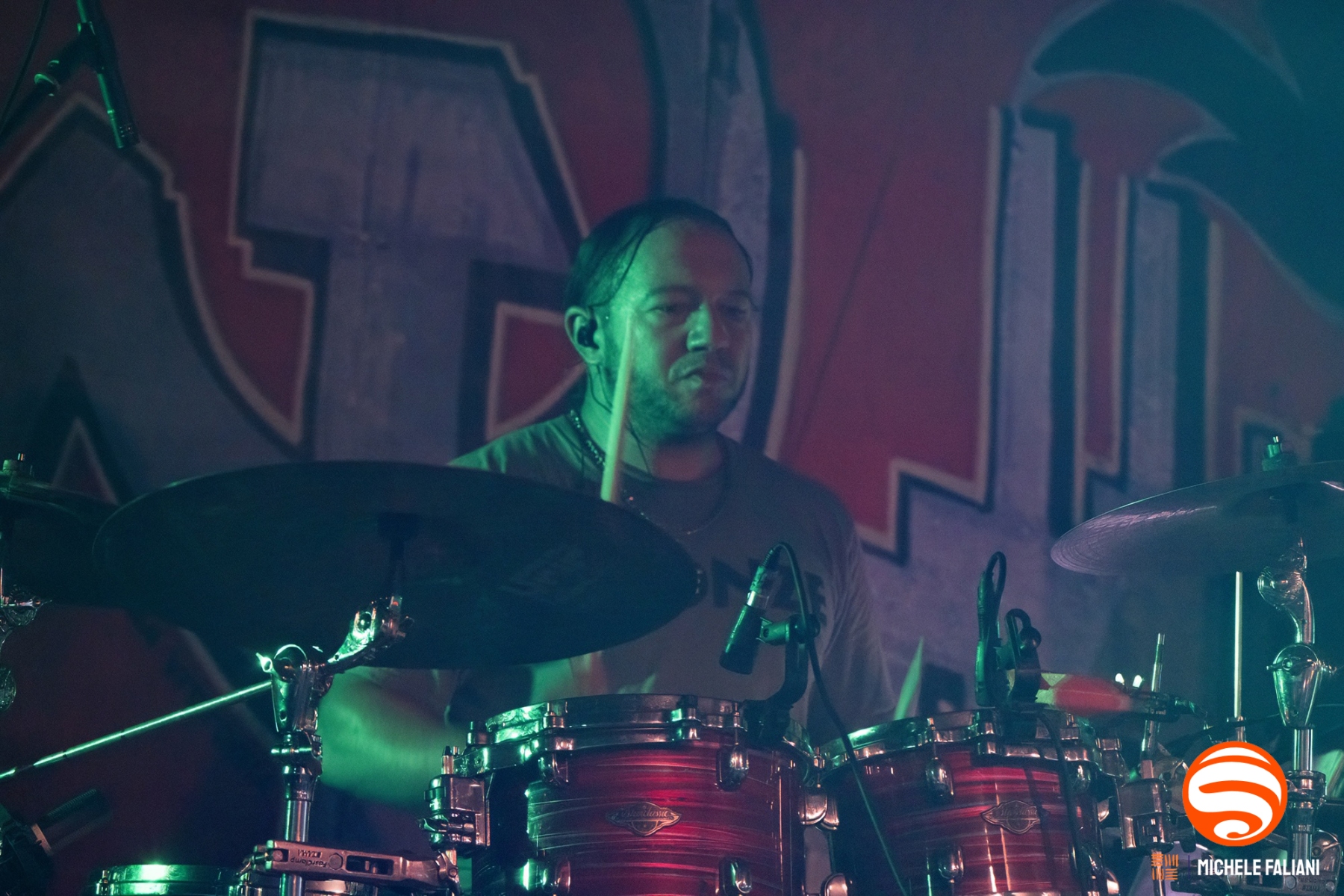 Headliner della serata i Meganoidi, attesissimi, che  confermano la loro solidità dal vivo, con una performance che mantiene intatta la potenza espressiva degli esordi. “La fine”, “M.r.s.” e “Altrove” restituiscono un punk diretto e incisivo, arricchito dalla tromba di Guercio, elemento distintivo capace di esaltare l’impatto sonoro e il coinvolgimento del pubblico. Il momento più atteso è “Supereroi contro la municipale”, accolta con entusiasmo unanime e cantato da tutti, compresi i volontari dei bar e del ristorante.