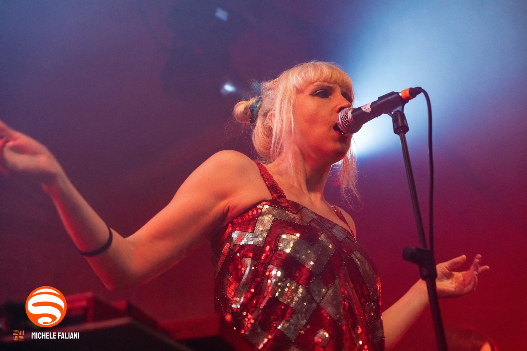 Nello spazio concerti il via è stato dato dall’esaltante darkwave dei Malati Immaginari, duo abruzzese che è stato finalista a Sanremo Rock nel 2022. A seguire il duo romano indietronic Mondocane, che hanno anticipato il set delle Cleopatras. Arrivate sul palco verso le 21,30 le bimbe fiorentine hanno eseguito un set energico e sanguigno, che ha coperto gran parte della loro produzione più che venticinquennale: dal manifesto “Vagina Strike” fino a “Maldido” il loro garage punk con influenze beat e surf ha scatenato il pubblico, a cui hanno anche regalato alcune cover trascinanti come “Rock and roll robot” di Alberto Camerini e “La grande onda” del Piotta.